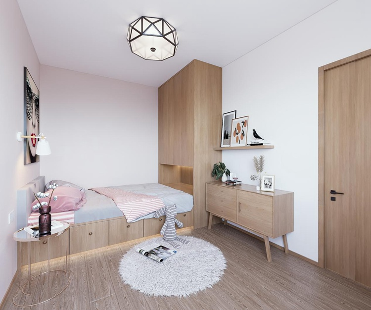 次卧的原木榻榻米设计也使得储物空间的大量保留,房间的整洁舒适时间轴拉长延伸至幸福海岸。