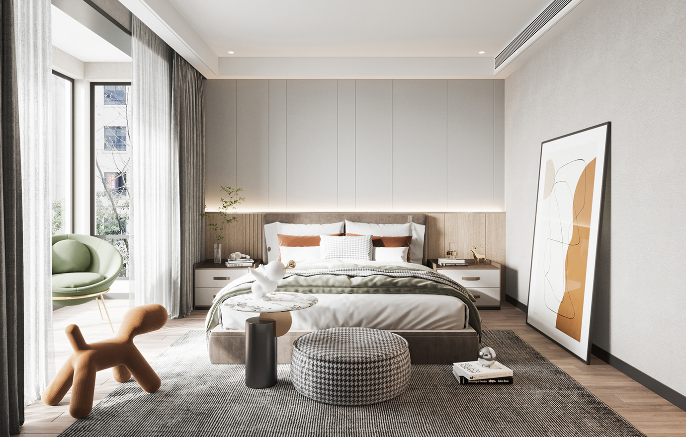 温润木色搭配白色墙体贯穿整个装修设计,入户玄关傍晚黄昏一开门那一抹温柔瞬间吹散了整天的工作疲劳,今日份的幸福感在心头环绕,慵懒却又轻快。原主卧房门的改动增加玄关区域的仪式感,餐厅区域的采光及舒适度都有了很大的提升。邻近天地壮阔,厚载心境盛境,格局是横亘于人群中幽静的分野。客厅电视背景的2:8的整体电视柜让居住收纳得到完美体现, 通过不同层次的木色搭配鸦青与灰色的沙发,小小的一撮绿植增添生机。整套空...