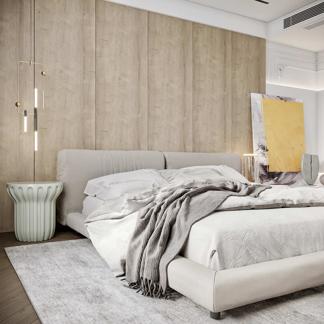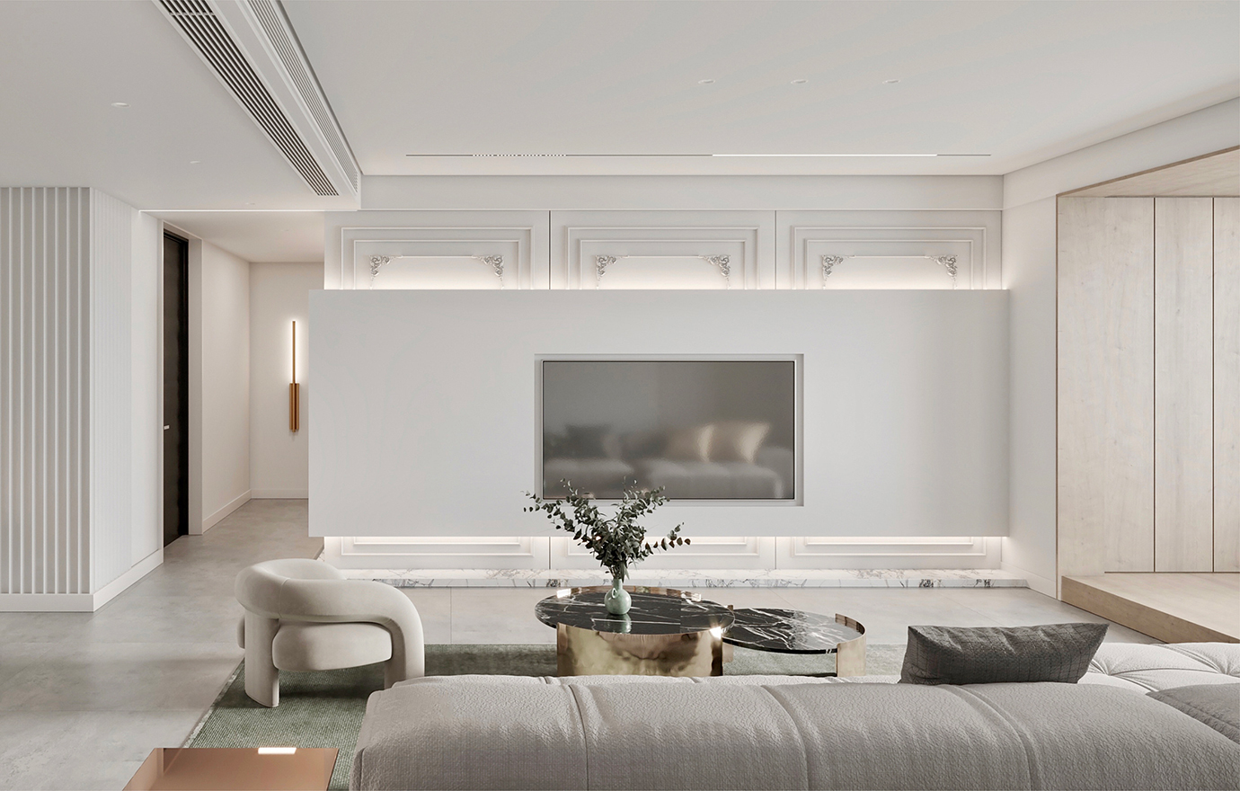 温润木色搭配白色墙体贯穿整个装修设计,入户玄关傍晚黄昏一开门那一抹温柔瞬间吹散了整天的工作疲劳,今日份的幸福感在心头环绕,慵懒却又轻快。原主卧房门的改动增加玄关区域的仪式感,餐厅区域的采光及舒适度都有了很大的提升。邻近天地壮阔,厚载心境盛境,格局是横亘于人群中幽静的分野。客厅电视背景的2:8的整体电视柜让居住收纳得到完美体现, 通过不同层次的木色搭配鸦青与灰色的沙发,小小的一撮绿植增添生机。整套空...