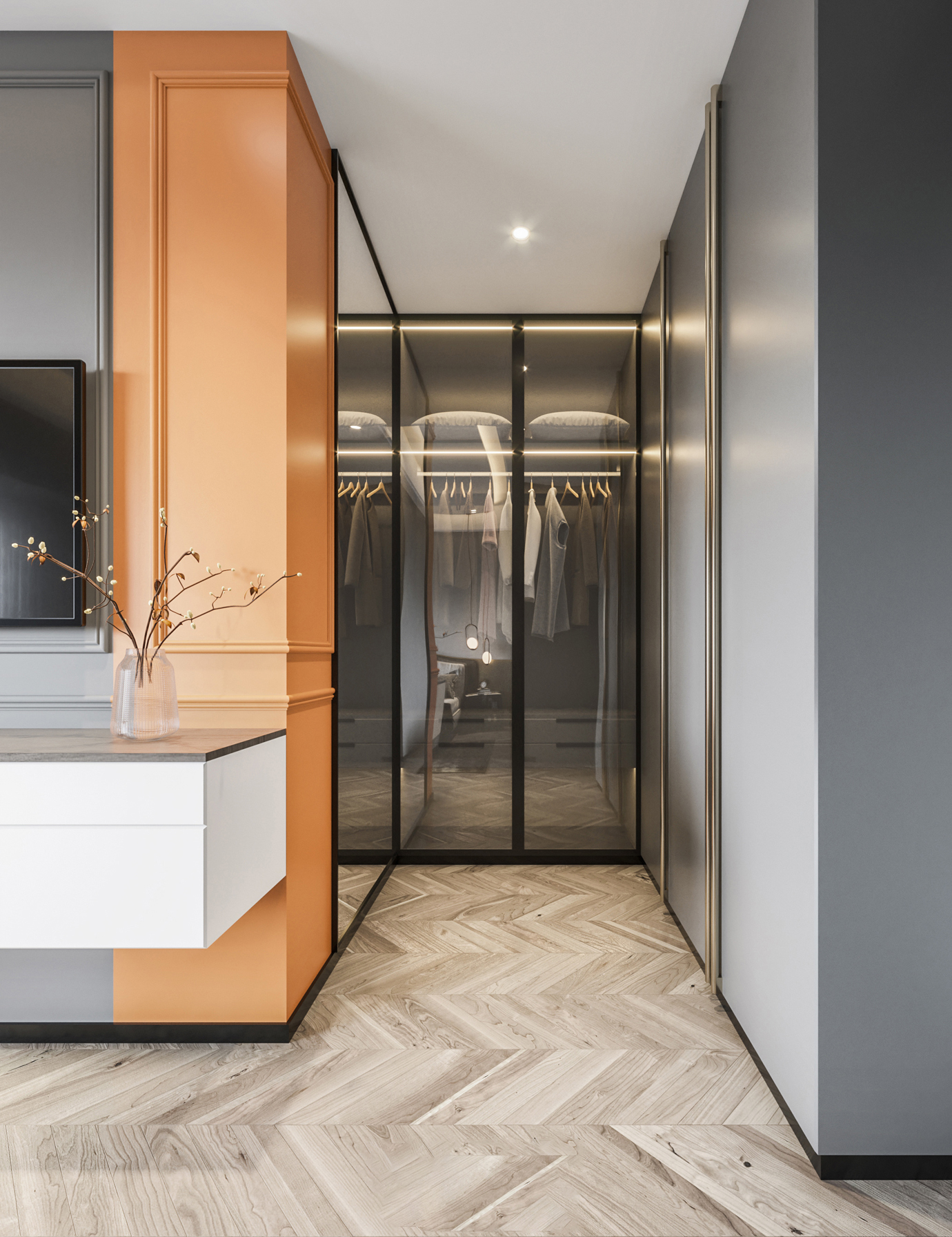 温润木色搭配白色墙体贯穿整个装修设计,入户玄关傍晚黄昏一开门那一抹温柔瞬间吹散了整天的工作疲劳,今日份的幸福感在心头环绕,慵懒却又轻快。原主卧房门的改动增加玄关区域的仪式感,餐厅区域的采光及舒适度都有了很大的提升。邻近天地壮阔,厚载心境盛境,格局是横亘于人群中幽静的分野。客厅电视背景的2:8的整体电视柜让居住收纳得到完美体现, 通过不同层次的木色搭配鸦青与灰色的沙发,小小的一撮绿植增添生机。整套空...