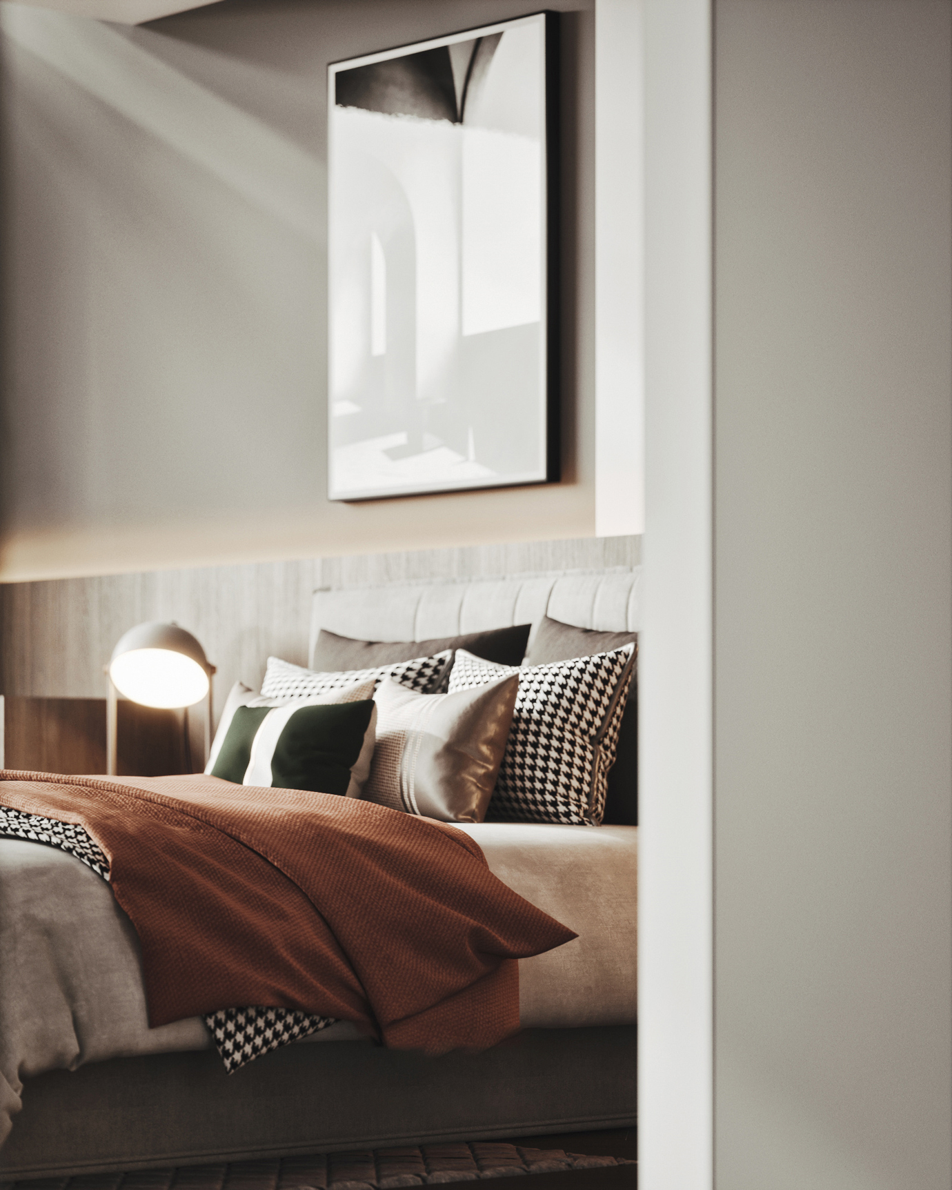温润木色搭配白色墙体贯穿整个装修设计,入户玄关傍晚黄昏一开门那一抹温柔瞬间吹散了整天的工作疲劳,今日份的幸福感在心头环绕,慵懒却又轻快。原主卧房门的改动增加玄关区域的仪式感,餐厅区域的采光及舒适度都有了很大的提升。邻近天地壮阔,厚载心境盛境,格局是横亘于人群中幽静的分野。客厅电视背景的2:8的整体电视柜让居住收纳得到完美体现, 通过不同层次的木色搭配鸦青与灰色的沙发,小小的一撮绿植增添生机。整套空...