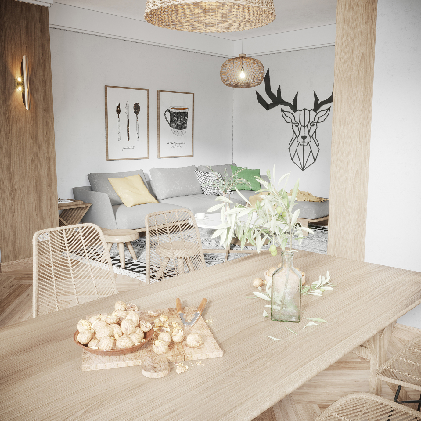 温润木色搭配白色墙体贯穿整个装修设计,入户玄关傍晚黄昏一开门那一抹温柔瞬间吹散了整天的工作疲劳,今日份的幸福感在心头环绕,慵懒却又轻快。原主卧房门的改动增加玄关区域的仪式感,餐厅区域的采光及舒适度都有了很大的提升。邻近天地壮阔,厚载心境盛境,格局是横亘于人群中幽静的分野。客厅电视背景的2:8的整体电视柜让居住收纳得到完美体现, 通过不同层次的木色搭配鸦青与灰色的沙发,小小的一撮绿植增添生机。整套空...