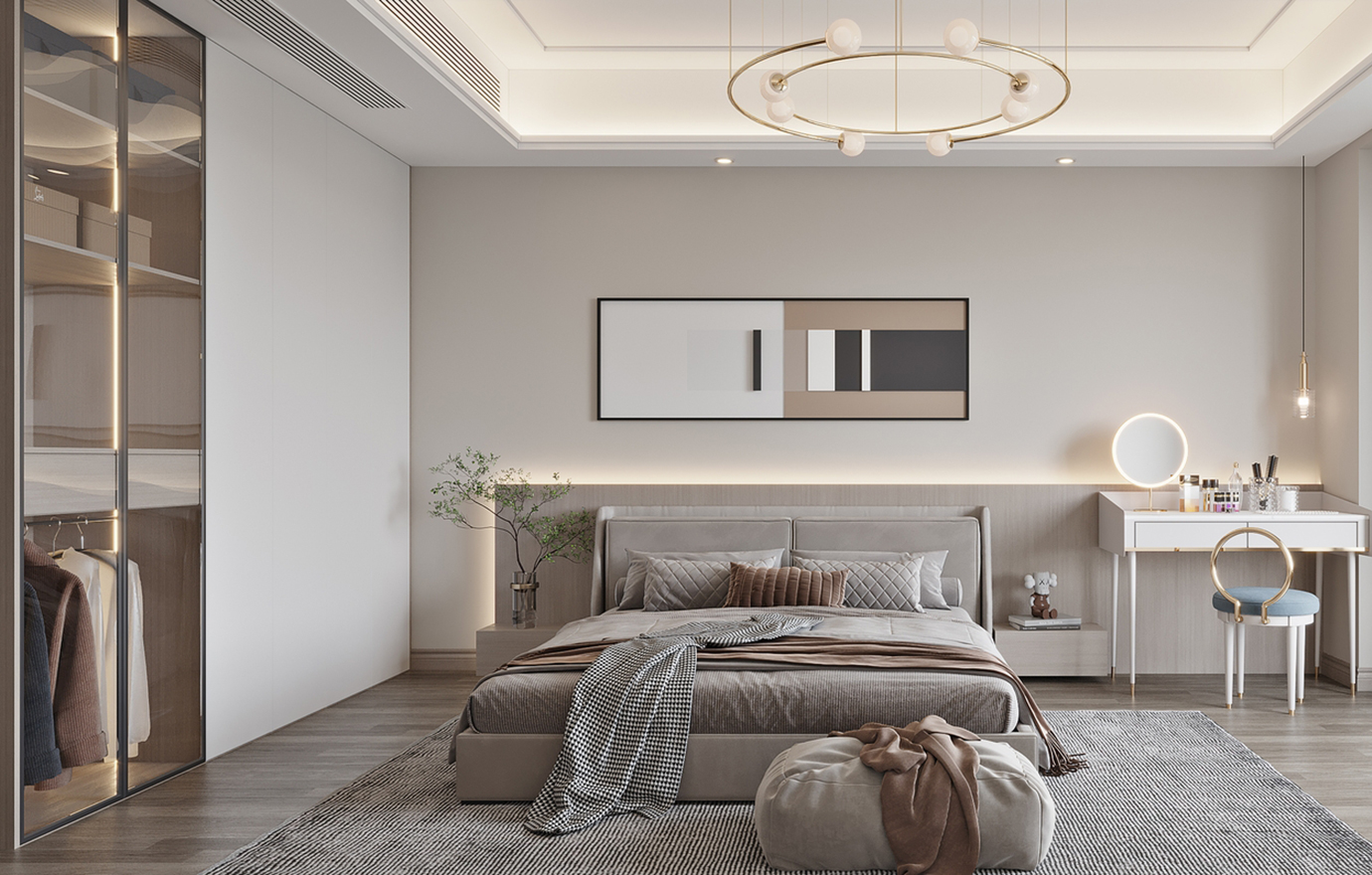 温润木色搭配白色墙体贯穿整个装修设计,入户玄关傍晚黄昏一开门那一抹温柔瞬间吹散了整天的工作疲劳,今日份的幸福感在心头环绕,慵懒却又轻快。原主卧房门的改动增加玄关区域的仪式感,餐厅区域的采光及舒适度都有了很大的提升。邻近天地壮阔,厚载心境盛境,格局是横亘于人群中幽静的分野。客厅电视背景的2:8的整体电视柜让居住收纳得到完美体现, 通过不同层次的木色搭配鸦青与灰色的沙发,小小的一撮绿植增添生机。整套空...