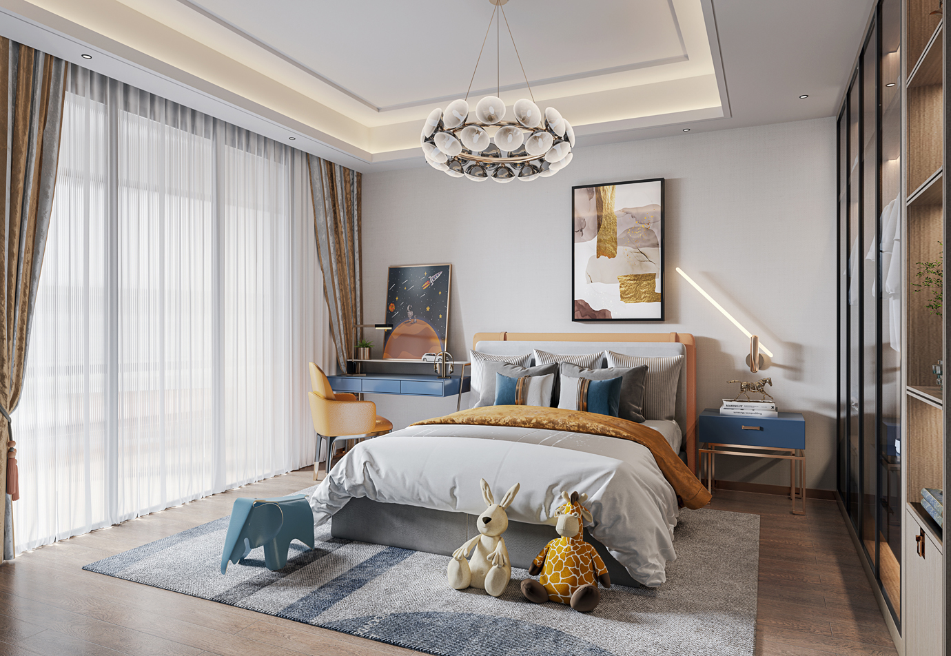 温润木色搭配白色墙体贯穿整个装修设计,入户玄关傍晚黄昏一开门那一抹温柔瞬间吹散了整天的工作疲劳,今日份的幸福感在心头环绕,慵懒却又轻快。原主卧房门的改动增加玄关区域的仪式感,餐厅区域的采光及舒适度都有了很大的提升。邻近天地壮阔,厚载心境盛境,格局是横亘于人群中幽静的分野。客厅电视背景的2:8的整体电视柜让居住收纳得到完美体现, 通过不同层次的木色搭配鸦青与灰色的沙发,小小的一撮绿植增添生机。整套空...
