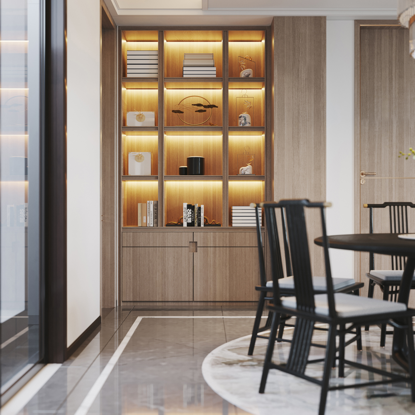 温润木色搭配白色墙体贯穿整个装修设计,入户玄关傍晚黄昏一开门那一抹温柔瞬间吹散了整天的工作疲劳,今日份的幸福感在心头环绕,慵懒却又轻快。原主卧房门的改动增加玄关区域的仪式感,餐厅区域的采光及舒适度都有了很大的提升。邻近天地壮阔,厚载心境盛境,格局是横亘于人群中幽静的分野。客厅电视背景的2:8的整体电视柜让居住收纳得到完美体现, 通过不同层次的木色搭配鸦青与灰色的沙发,小小的一撮绿植增添生机。整套空...