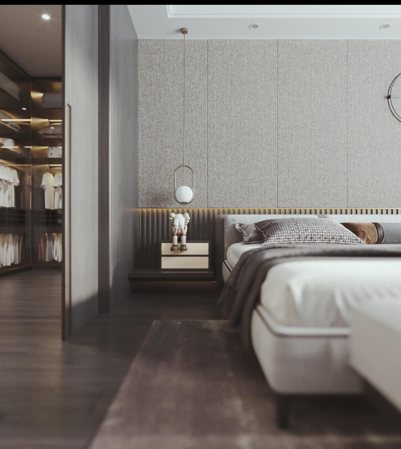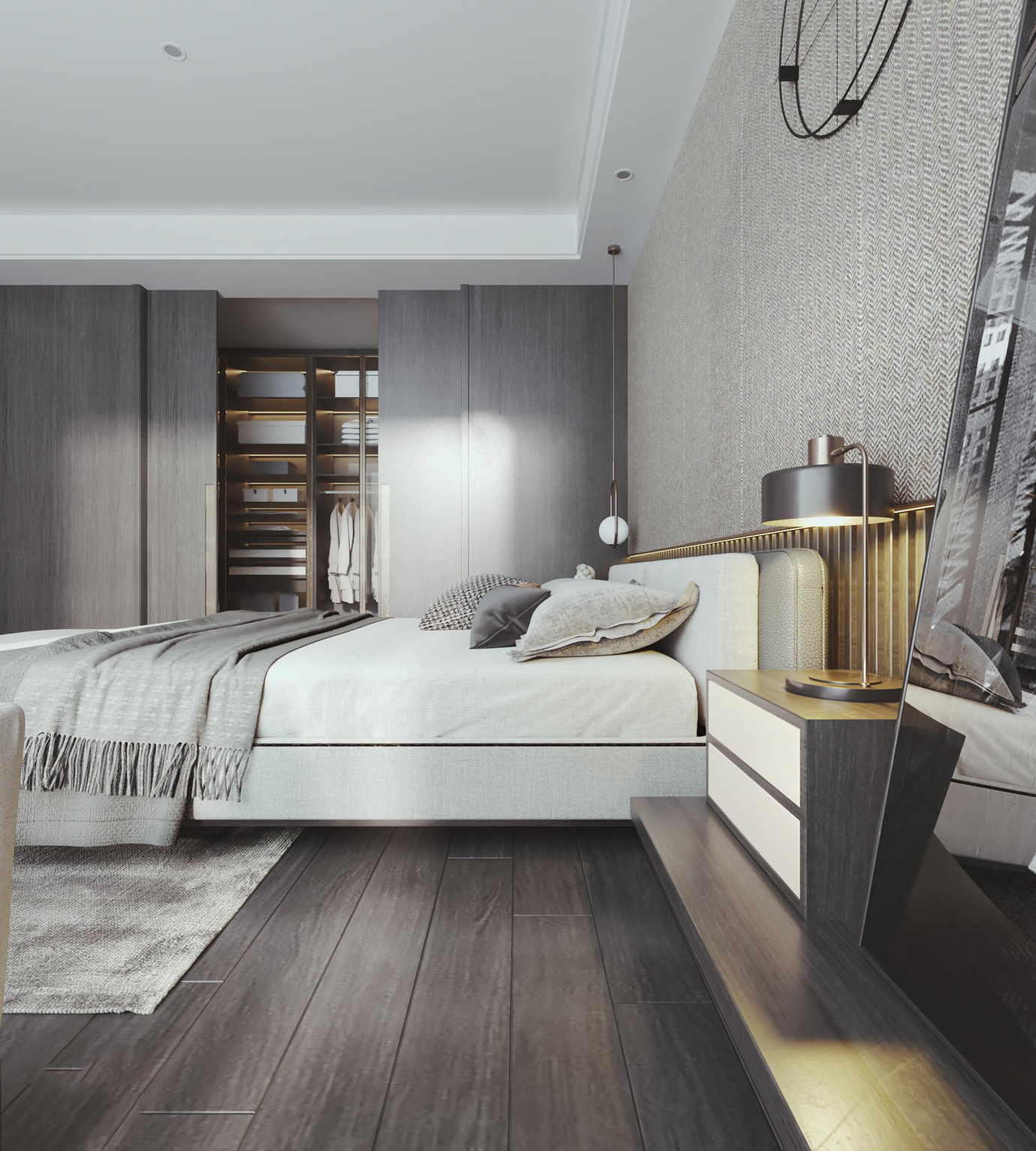 温润木色搭配白色墙体贯穿整个装修设计,入户玄关傍晚黄昏一开门那一抹温柔瞬间吹散了整天的工作疲劳,今日份的幸福感在心头环绕,慵懒却又轻快。原主卧房门的改动增加玄关区域的仪式感,餐厅区域的采光及舒适度都有了很大的提升。邻近天地壮阔,厚载心境盛境,格局是横亘于人群中幽静的分野。客厅电视背景的2:8的整体电视柜让居住收纳得到完美体现, 通过不同层次的木色搭配鸦青与灰色的沙发,小小的一撮绿植增添生机。整套空...