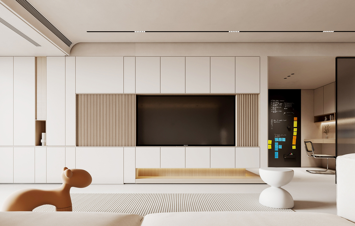 温润木色搭配白色墙体贯穿整个装修设计,入户玄关傍晚黄昏一开门那一抹温柔瞬间吹散了整天的工作疲劳,今日份的幸福感在心头环绕,慵懒却又轻快。原主卧房门的改动增加玄关区域的仪式感,餐厅区域的采光及舒适度都有了很大的提升。邻近天地壮阔,厚载心境盛境,格局是横亘于人群中幽静的分野。客厅电视背景的2:8的整体电视柜让居住收纳得到完美体现, 通过不同层次的木色搭配鸦青与灰色的沙发,小小的一撮绿植增添生机。整套空...