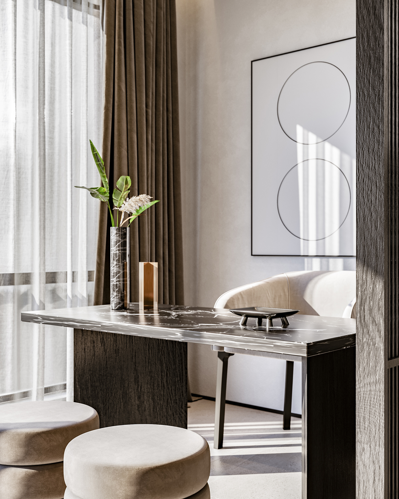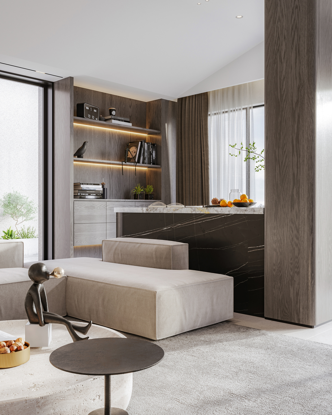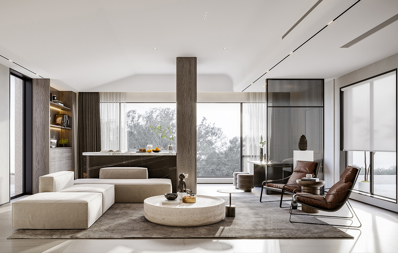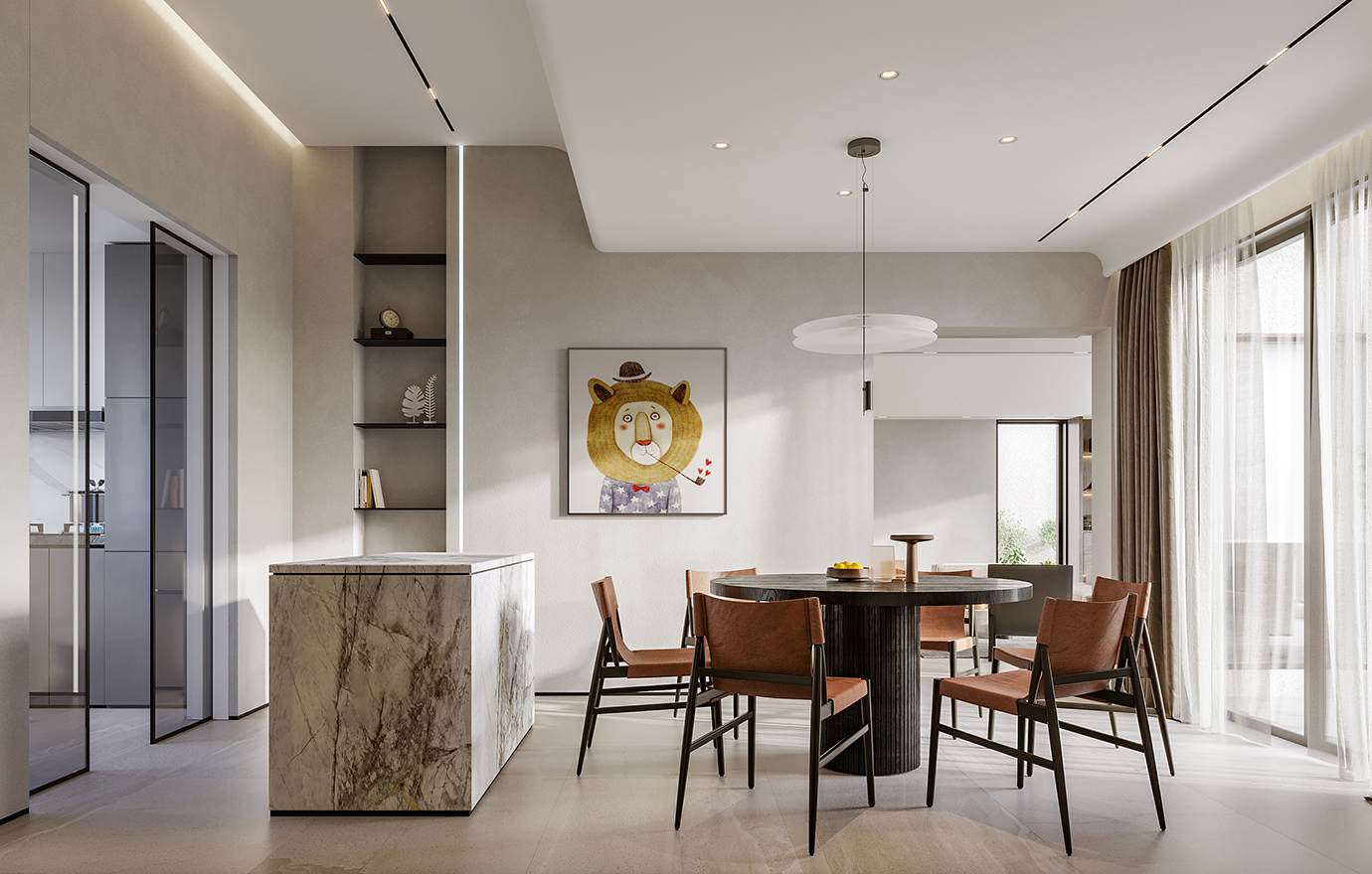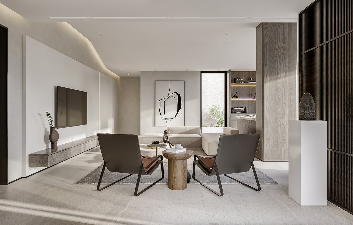 温润木色搭配白色墙体贯穿整个装修设计,入户玄关傍晚黄昏一开门那一抹温柔瞬间吹散了整天的工作疲劳,今日份的幸福感在心头环绕,慵懒却又轻快。原主卧房门的改动增加玄关区域的仪式感,餐厅区域的采光及舒适度都有了很大的提升。邻近天地壮阔,厚载心境盛境,格局是横亘于人群中幽静的分野。客厅电视背景的2:8的整体电视柜让居住收纳得到完美体现, 通过不同层次的木色搭配鸦青与灰色的沙发,小小的一撮绿植增添生机。整套空...