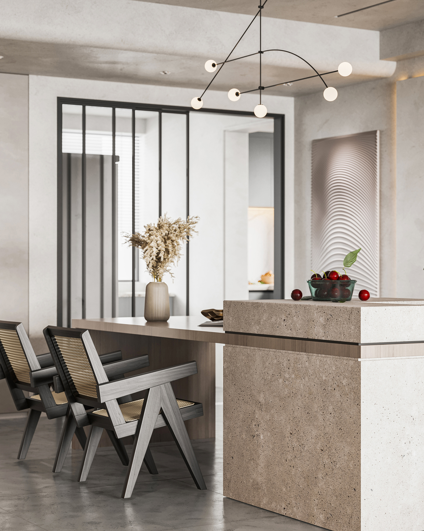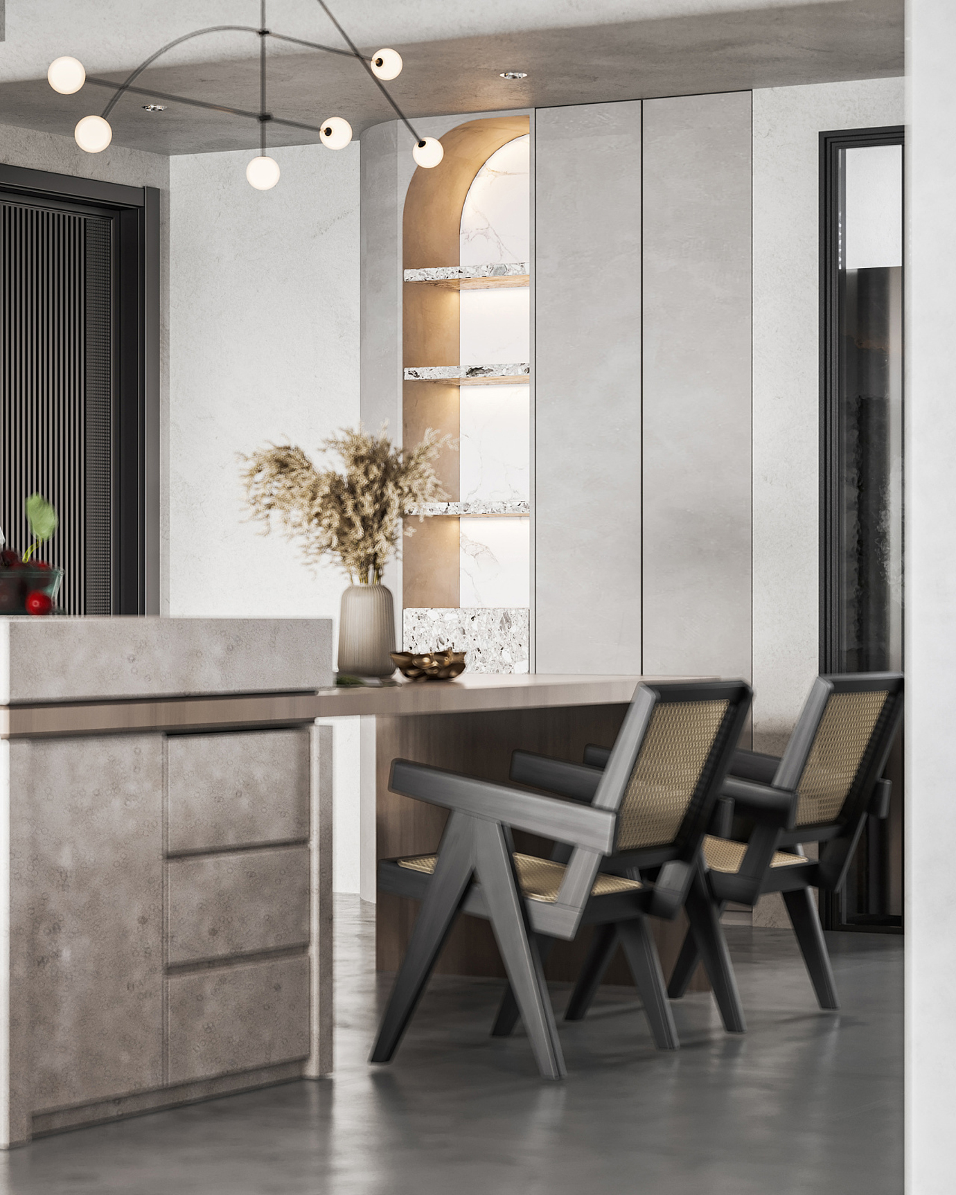 温润木色搭配白色墙体贯穿整个装修设计,入户玄关傍晚黄昏一开门那一抹温柔瞬间吹散了整天的工作疲劳,今日份的幸福感在心头环绕,慵懒却又轻快。原主卧房门的改动增加玄关区域的仪式感,餐厅区域的采光及舒适度都有了很大的提升。邻近天地壮阔,厚载心境盛境,格局是横亘于人群中幽静的分野。客厅电视背景的2:8的整体电视柜让居住收纳得到完美体现, 通过不同层次的木色搭配鸦青与灰色的沙发,小小的一撮绿植增添生机。整套空...