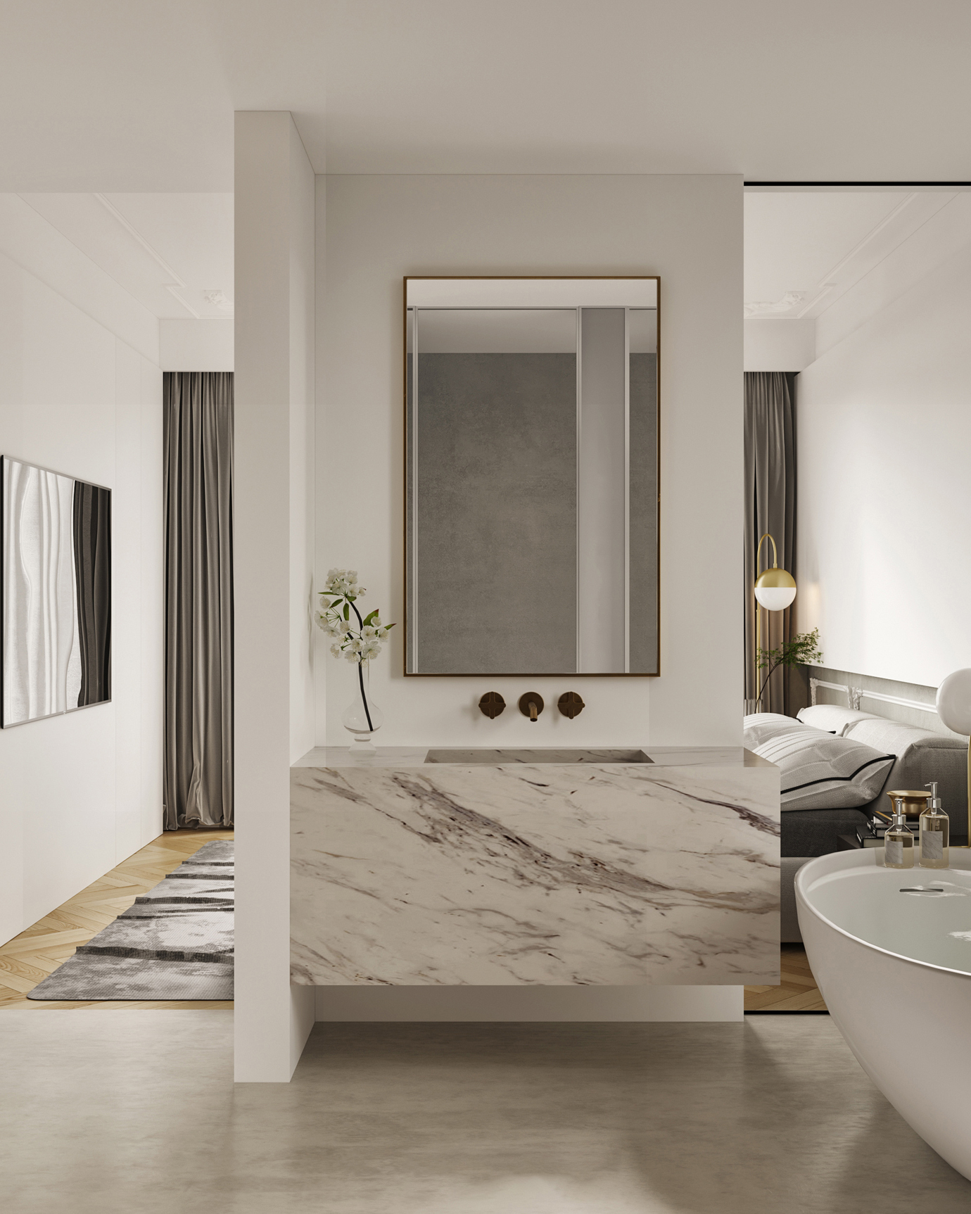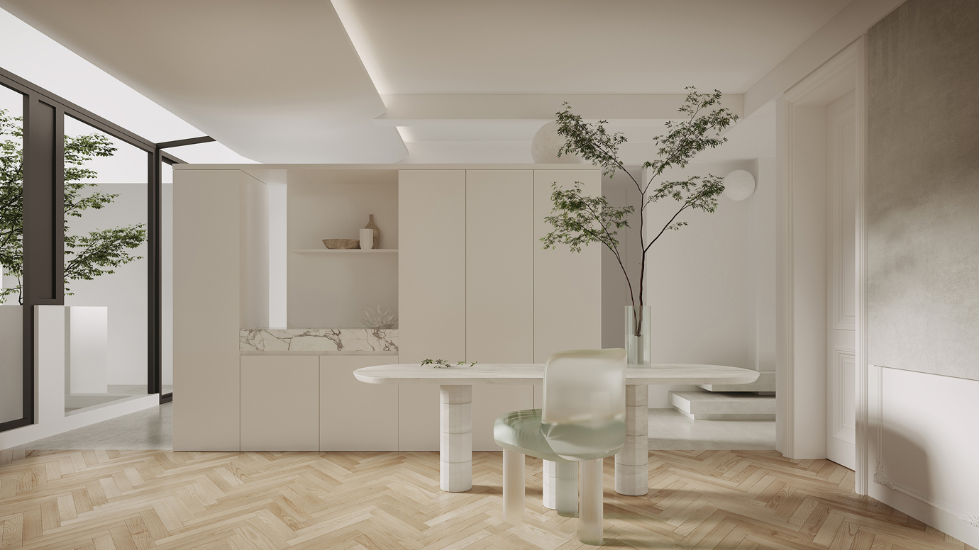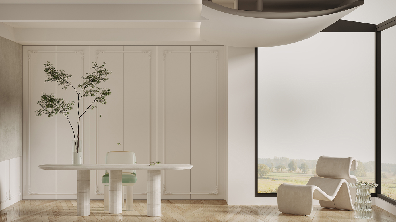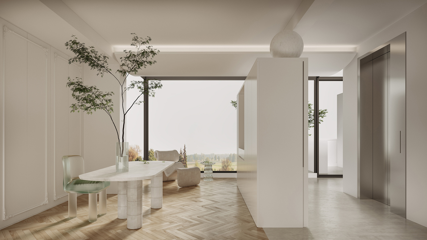 温润木色搭配白色墙体贯穿整个装修设计,入户玄关傍晚黄昏一开门那一抹温柔瞬间吹散了整天的工作疲劳,今日份的幸福感在心头环绕,慵懒却又轻快。原主卧房门的改动增加玄关区域的仪式感,餐厅区域的采光及舒适度都有了很大的提升。邻近天地壮阔,厚载心境盛境,格局是横亘于人群中幽静的分野。客厅电视背景的2:8的整体电视柜让居住收纳得到完美体现, 通过不同层次的木色搭配鸦青与灰色的沙发,小小的一撮绿植增添生机。整套空...