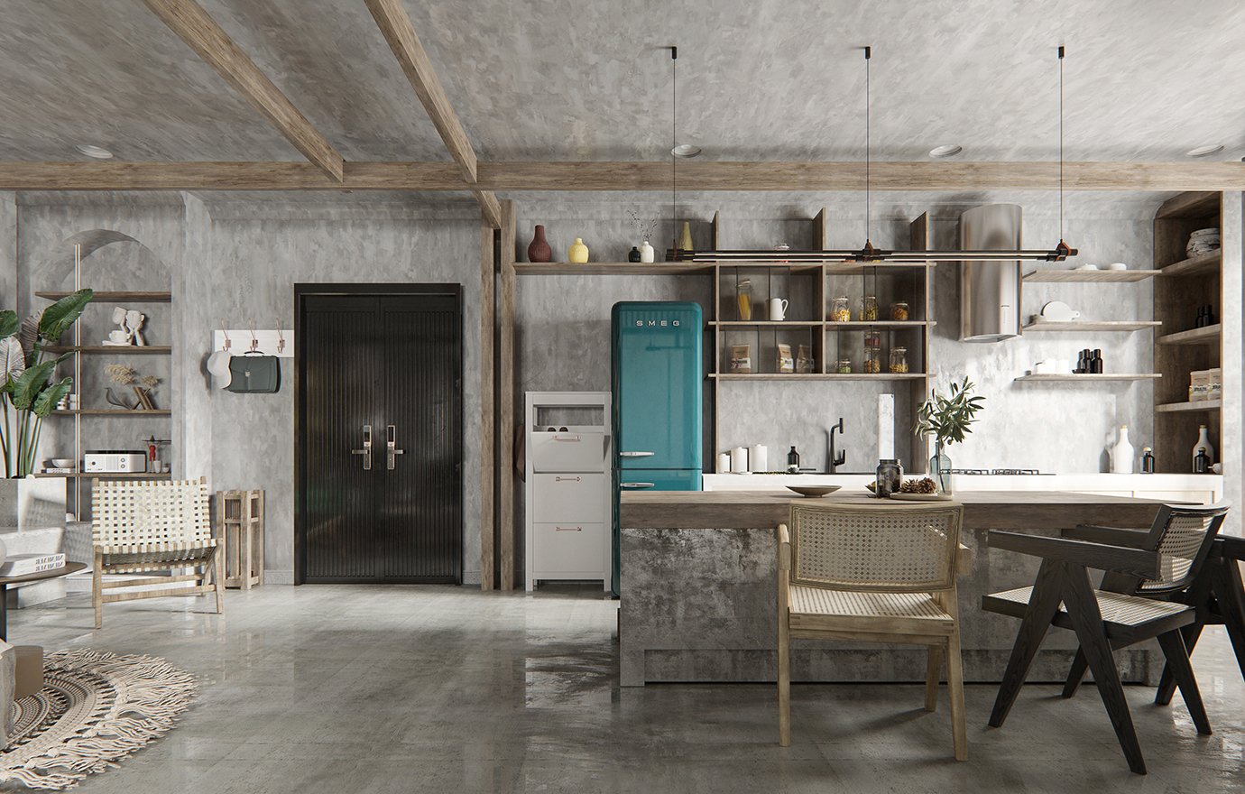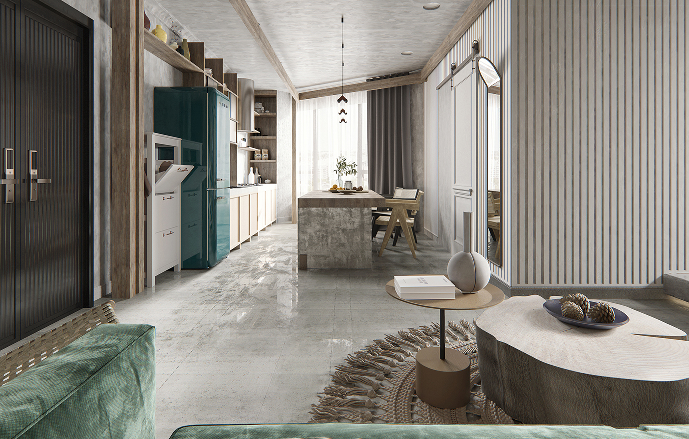 温润木色搭配白色墙体贯穿整个装修设计,入户玄关傍晚黄昏一开门那一抹温柔瞬间吹散了整天的工作疲劳,今日份的幸福感在心头环绕,慵懒却又轻快。原主卧房门的改动增加玄关区域的仪式感,餐厅区域的采光及舒适度都有了很大的提升。邻近天地壮阔,厚载心境盛境,格局是横亘于人群中幽静的分野。客厅电视背景的2:8的整体电视柜让居住收纳得到完美体现, 通过不同层次的木色搭配鸦青与灰色的沙发,小小的一撮绿植增添生机。整套空...