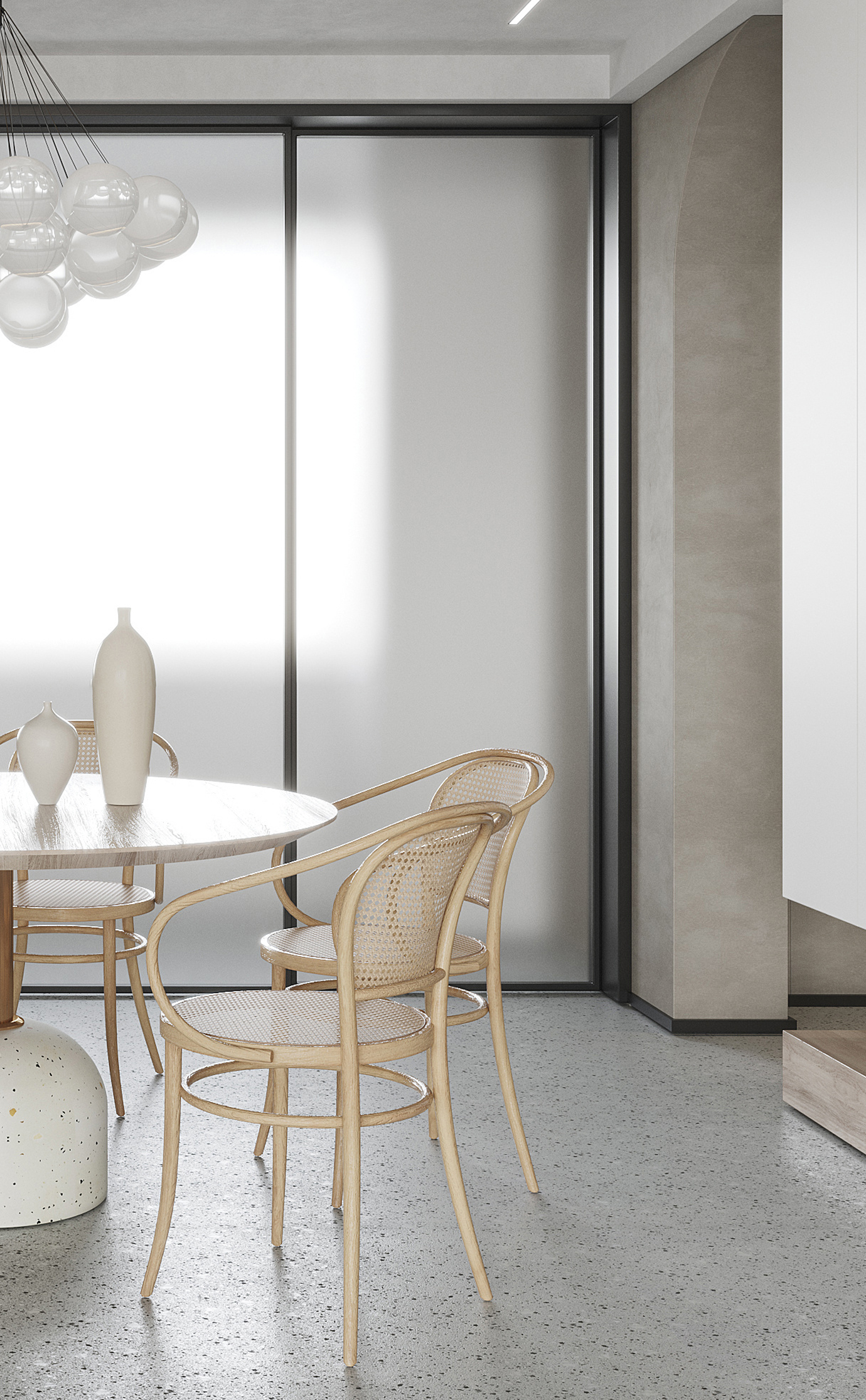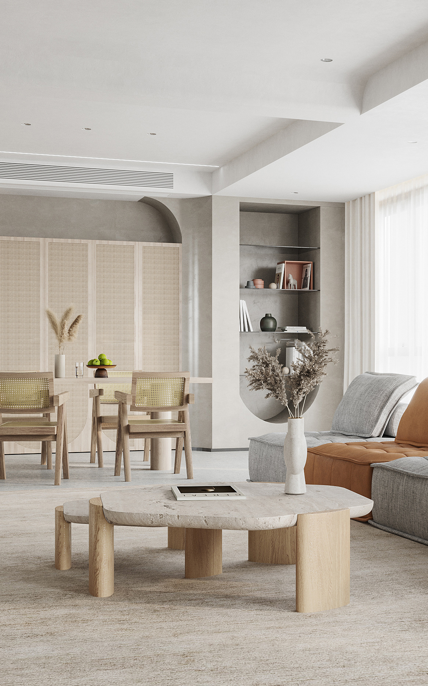 温润木色搭配白色墙体贯穿整个装修设计,入户玄关傍晚黄昏一开门那一抹温柔瞬间吹散了整天的工作疲劳,今日份的幸福感在心头环绕,慵懒却又轻快。原主卧房门的改动增加玄关区域的仪式感,餐厅区域的采光及舒适度都有了很大的提升。邻近天地壮阔,厚载心境盛境,格局是横亘于人群中幽静的分野。客厅电视背景的2:8的整体电视柜让居住收纳得到完美体现, 通过不同层次的木色搭配鸦青与灰色的沙发,小小的一撮绿植增添生机。整套空...