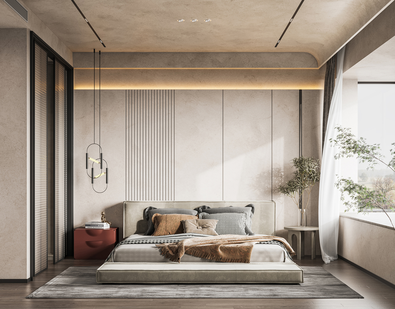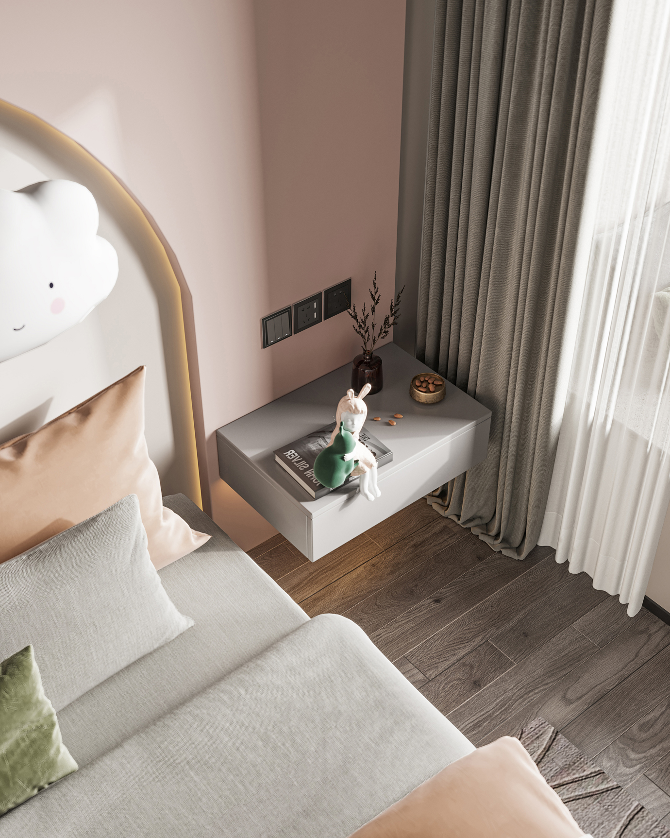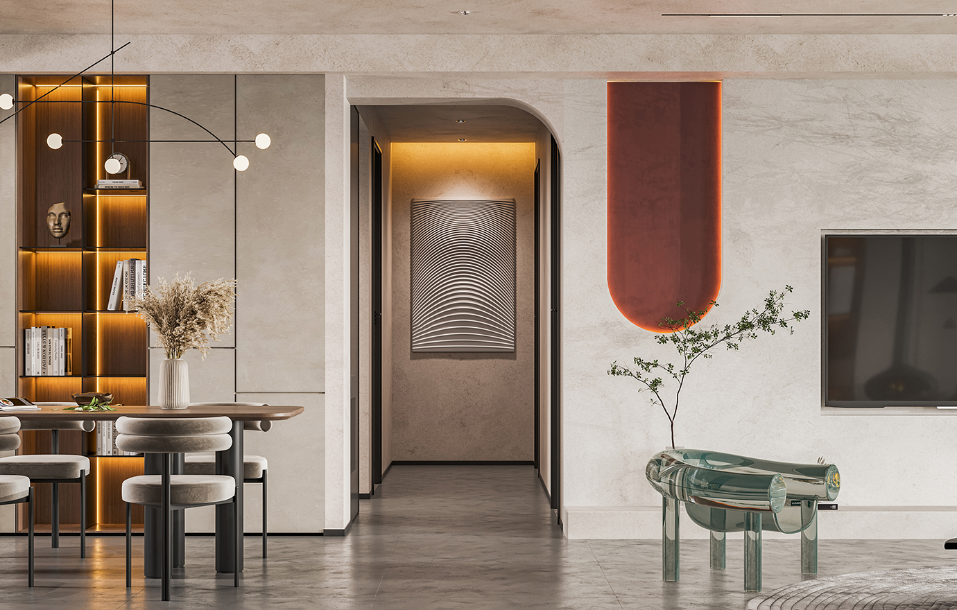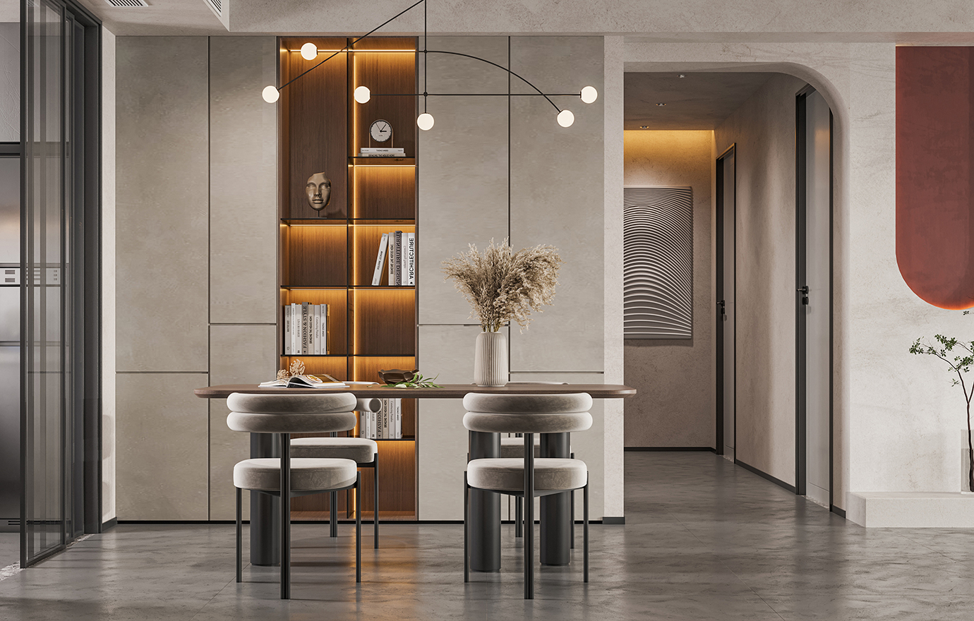 温润木色搭配白色墙体贯穿整个装修设计,入户玄关傍晚黄昏一开门那一抹温柔瞬间吹散了整天的工作疲劳,今日份的幸福感在心头环绕,慵懒却又轻快。原主卧房门的改动增加玄关区域的仪式感,餐厅区域的采光及舒适度都有了很大的提升。邻近天地壮阔,厚载心境盛境,格局是横亘于人群中幽静的分野。客厅电视背景的2:8的整体电视柜让居住收纳得到完美体现, 通过不同层次的木色搭配鸦青与灰色的沙发,小小的一撮绿植增添生机。整套空...