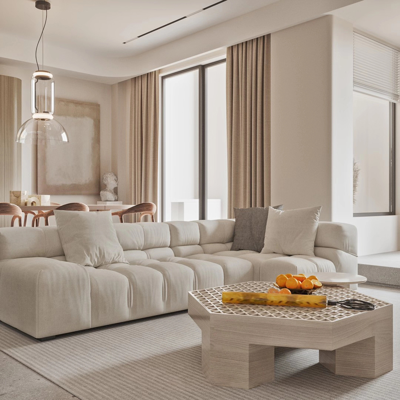温润木色搭配白色墙体贯穿整个装修设计,入户玄关傍晚黄昏一开门那一抹温柔瞬间吹散了整天的工作疲劳,今日份的幸福感在心头环绕,慵懒却又轻快。原主卧房门的改动增加玄关区域的仪式感,餐厅区域的采光及舒适度都有了很大的提升。邻近天地壮阔,厚载心境盛境,格局是横亘于人群中幽静的分野。客厅电视背景的2:8的整体电视柜让居住收纳得到完美体现, 通过不同层次的木色搭配鸦青与灰色的沙发,小小的一撮绿植增添生机。整套空...