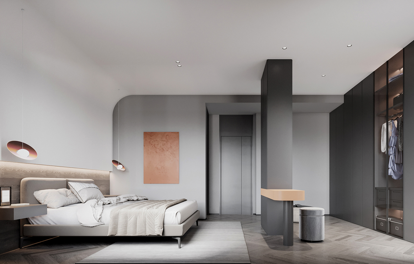 温润木色搭配白色墙体贯穿整个装修设计,入户玄关傍晚黄昏一开门那一抹温柔瞬间吹散了整天的工作疲劳,今日份的幸福感在心头环绕,慵懒却又轻快。原主卧房门的改动增加玄关区域的仪式感,餐厅区域的采光及舒适度都有了很大的提升。邻近天地壮阔,厚载心境盛境,格局是横亘于人群中幽静的分野。客厅电视背景的2:8的整体电视柜让居住收纳得到完美体现, 通过不同层次的木色搭配鸦青与灰色的沙发,小小的一撮绿植增添生机。整套空...