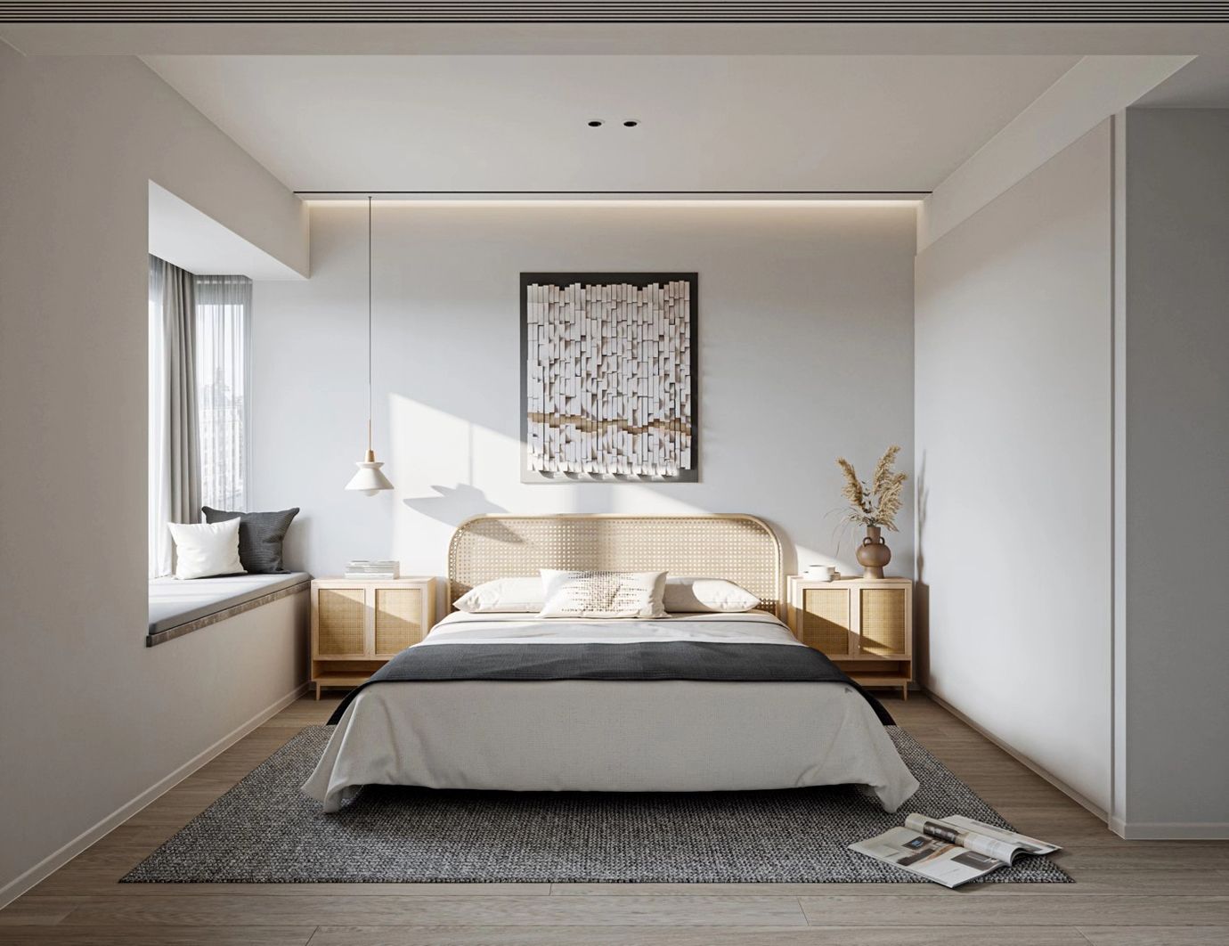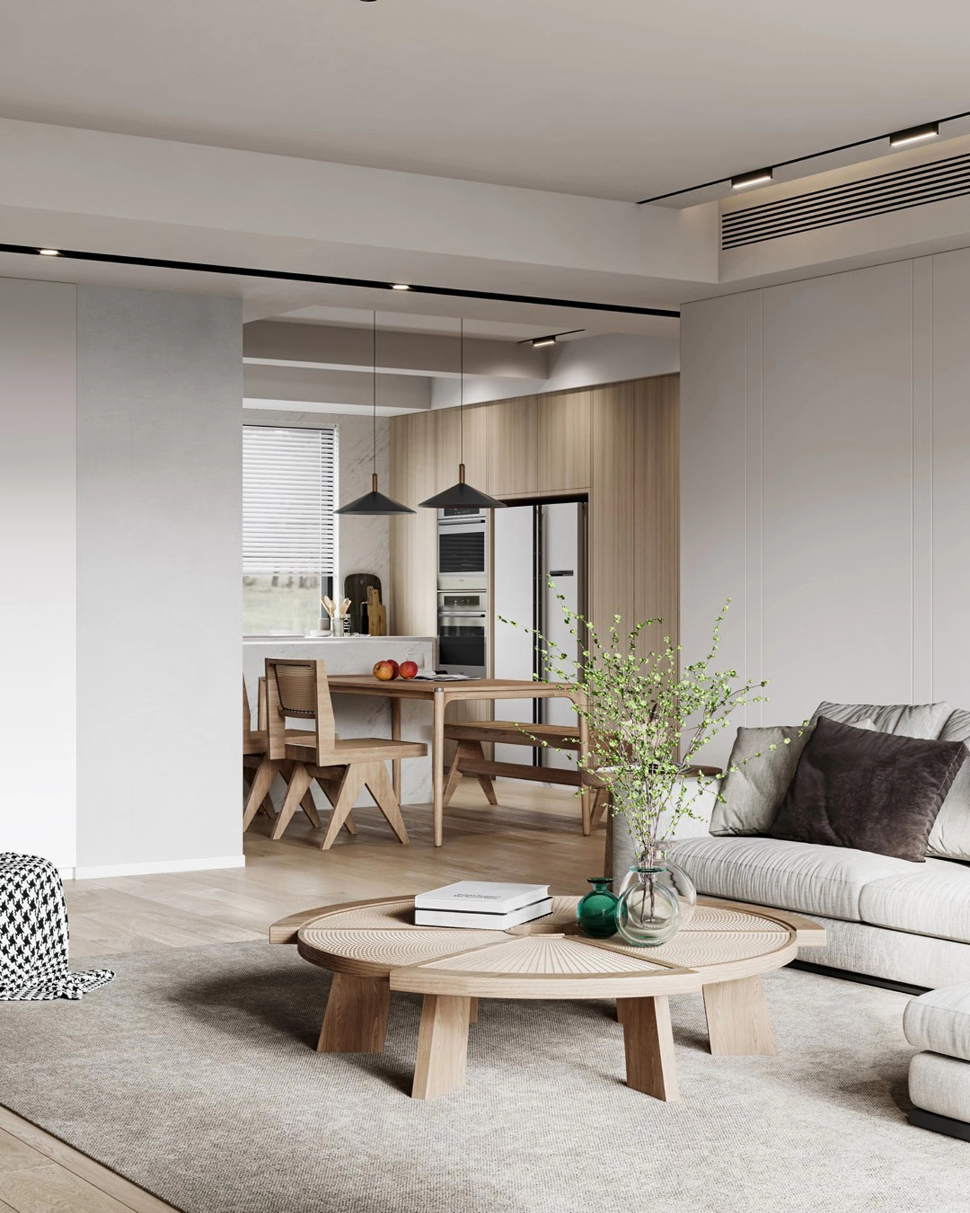 温润木色搭配白色墙体贯穿整个装修设计,入户玄关傍晚黄昏一开门那一抹温柔瞬间吹散了整天的工作疲劳,今日份的幸福感在心头环绕,慵懒却又轻快。原主卧房门的改动增加玄关区域的仪式感,餐厅区域的采光及舒适度都有了很大的提升。邻近天地壮阔,厚载心境盛境,格局是横亘于人群中幽静的分野。客厅电视背景的2:8的整体电视柜让居住收纳得到完美体现, 通过不同层次的木色搭配鸦青与灰色的沙发,小小的一撮绿植增添生机。整套空...