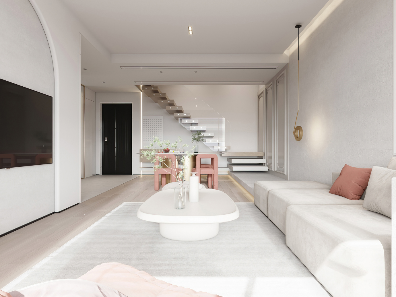 温润木色搭配白色墙体贯穿整个装修设计,入户玄关傍晚黄昏一开门那一抹温柔瞬间吹散了整天的工作疲劳,今日份的幸福感在心头环绕,慵懒却又轻快。原主卧房门的改动增加玄关区域的仪式感,餐厅区域的采光及舒适度都有了很大的提升。邻近天地壮阔,厚载心境盛境,格局是横亘于人群中幽静的分野。客厅电视背景的2:8的整体电视柜让居住收纳得到完美体现, 通过不同层次的木色搭配鸦青与灰色的沙发,小小的一撮绿植增添生机。整套空...