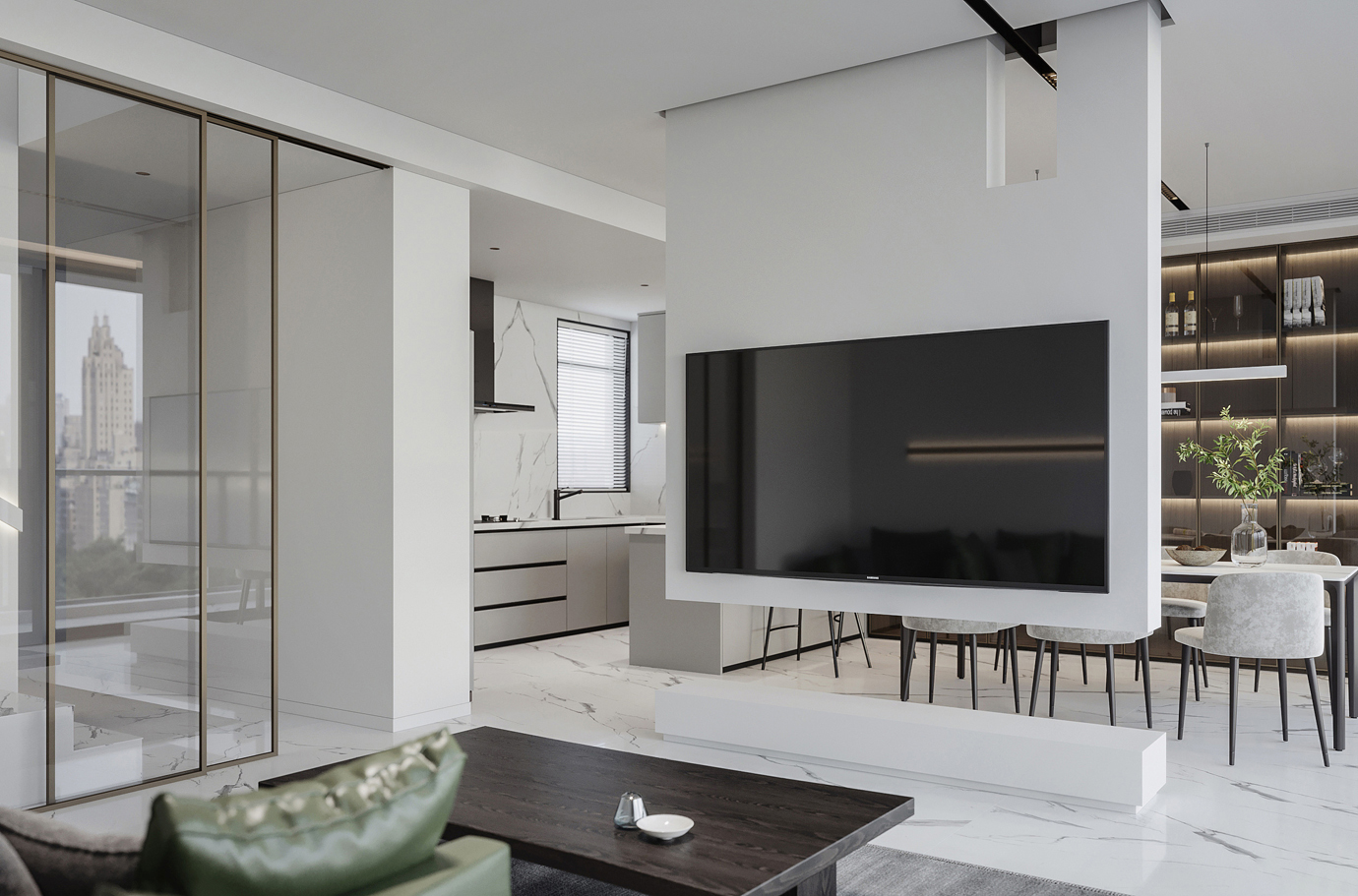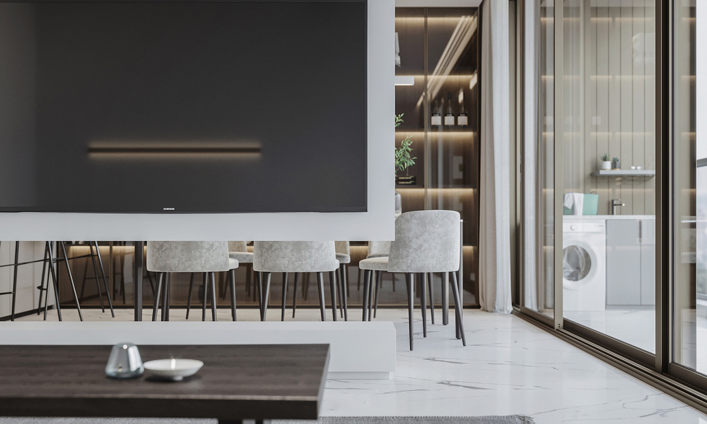 温润木色搭配白色墙体贯穿整个装修设计,入户玄关傍晚黄昏一开门那一抹温柔瞬间吹散了整天的工作疲劳,今日份的幸福感在心头环绕,慵懒却又轻快。原主卧房门的改动增加玄关区域的仪式感,餐厅区域的采光及舒适度都有了很大的提升。邻近天地壮阔,厚载心境盛境,格局是横亘于人群中幽静的分野。客厅电视背景的2:8的整体电视柜让居住收纳得到完美体现, 通过不同层次的木色搭配鸦青与灰色的沙发,小小的一撮绿植增添生机。整套空...