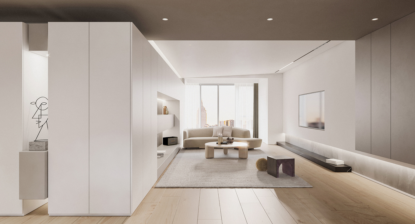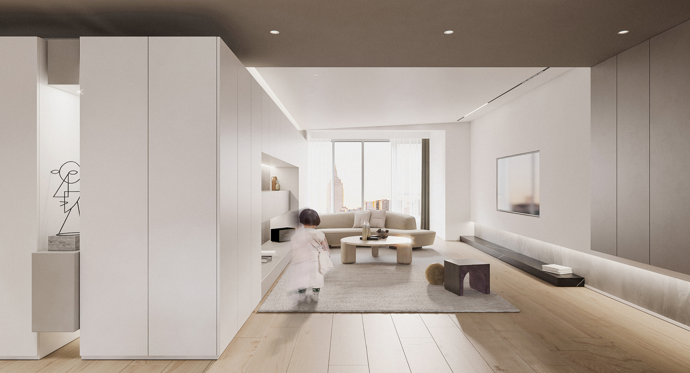 温润木色搭配白色墙体贯穿整个装修设计,入户玄关傍晚黄昏一开门那一抹温柔瞬间吹散了整天的工作疲劳,今日份的幸福感在心头环绕,慵懒却又轻快。原主卧房门的改动增加玄关区域的仪式感,餐厅区域的采光及舒适度都有了很大的提升。邻近天地壮阔,厚载心境盛境,格局是横亘于人群中幽静的分野。客厅电视背景的2:8的整体电视柜让居住收纳得到完美体现, 通过不同层次的木色搭配鸦青与灰色的沙发,小小的一撮绿植增添生机。整套空...