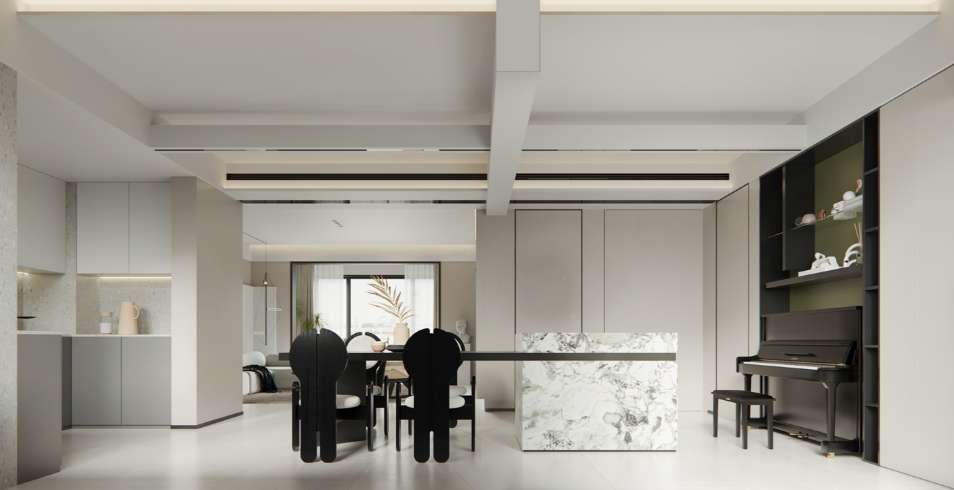 温润木色搭配白色墙体贯穿整个装修设计,入户玄关傍晚黄昏一开门那一抹温柔瞬间吹散了整天的工作疲劳,今日份的幸福感在心头环绕,慵懒却又轻快。原主卧房门的改动增加玄关区域的仪式感,餐厅区域的采光及舒适度都有了很大的提升。邻近天地壮阔,厚载心境盛境,格局是横亘于人群中幽静的分野。客厅电视背景的2:8的整体电视柜让居住收纳得到完美体现, 通过不同层次的木色搭配鸦青与灰色的沙发,小小的一撮绿植增添生机。整套空...