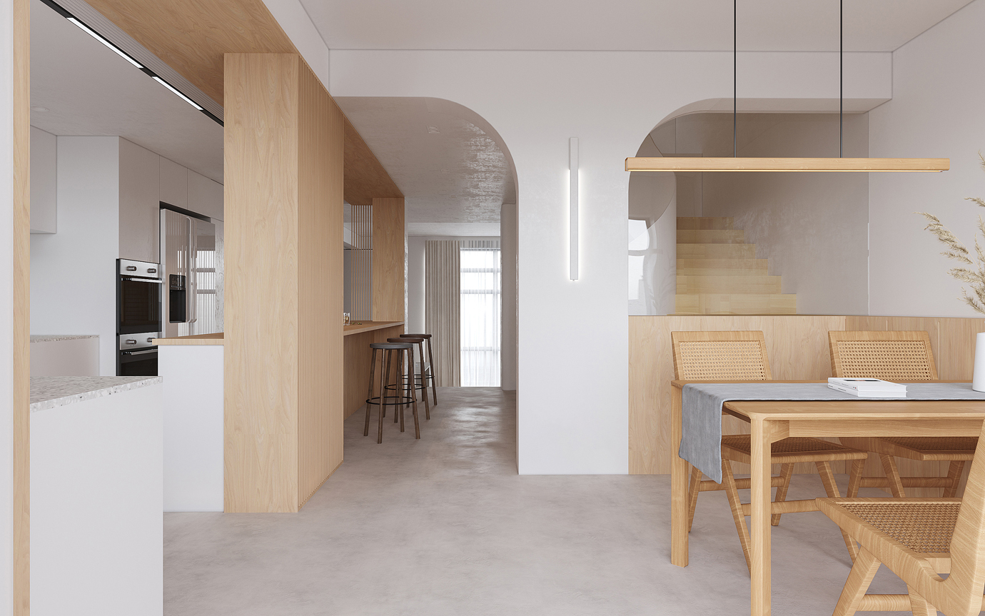 温润木色搭配白色墙体贯穿整个装修设计,入户玄关傍晚黄昏一开门那一抹温柔瞬间吹散了整天的工作疲劳,今日份的幸福感在心头环绕,慵懒却又轻快。原主卧房门的改动增加玄关区域的仪式感,餐厅区域的采光及舒适度都有了很大的提升。邻近天地壮阔,厚载心境盛境,格局是横亘于人群中幽静的分野。客厅电视背景的2:8的整体电视柜让居住收纳得到完美体现, 通过不同层次的木色搭配鸦青与灰色的沙发,小小的一撮绿植增添生机。整套空...