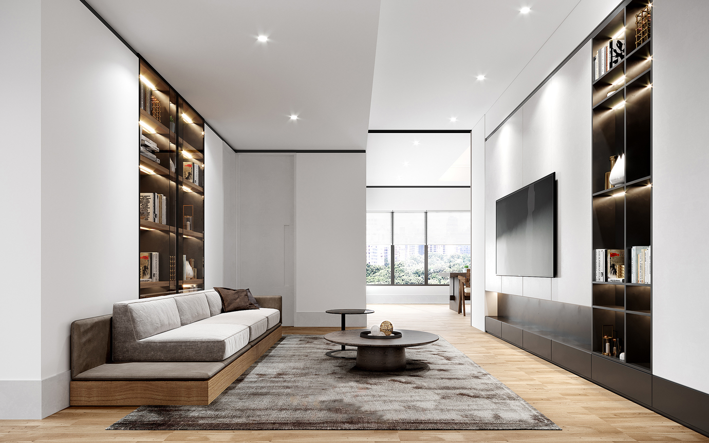 温润木色搭配白色墙体贯穿整个装修设计,入户玄关傍晚黄昏一开门那一抹温柔瞬间吹散了整天的工作疲劳,今日份的幸福感在心头环绕,慵懒却又轻快。原主卧房门的改动增加玄关区域的仪式感,餐厅区域的采光及舒适度都有了很大的提升。邻近天地壮阔,厚载心境盛境,格局是横亘于人群中幽静的分野。客厅电视背景的2:8的整体电视柜让居住收纳得到完美体现, 通过不同层次的木色搭配鸦青与灰色的沙发,小小的一撮绿植增添生机。整套空...