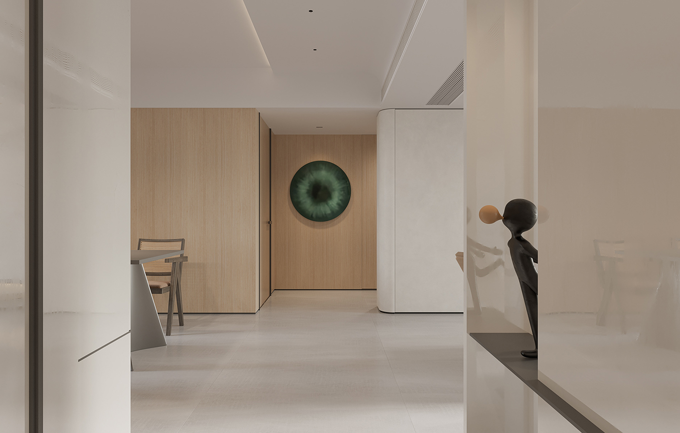 温润木色搭配白色墙体贯穿整个装修设计,入户玄关傍晚黄昏一开门那一抹温柔瞬间吹散了整天的工作疲劳,今日份的幸福感在心头环绕,慵懒却又轻快。原主卧房门的改动增加玄关区域的仪式感,餐厅区域的采光及舒适度都有了很大的提升。邻近天地壮阔,厚载心境盛境,格局是横亘于人群中幽静的分野。客厅电视背景的2:8的整体电视柜让居住收纳得到完美体现, 通过不同层次的木色搭配鸦青与灰色的沙发,小小的一撮绿植增添生机。整套空...