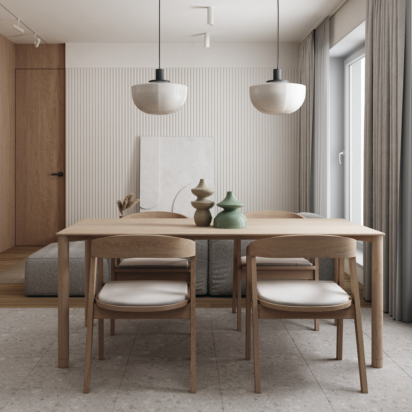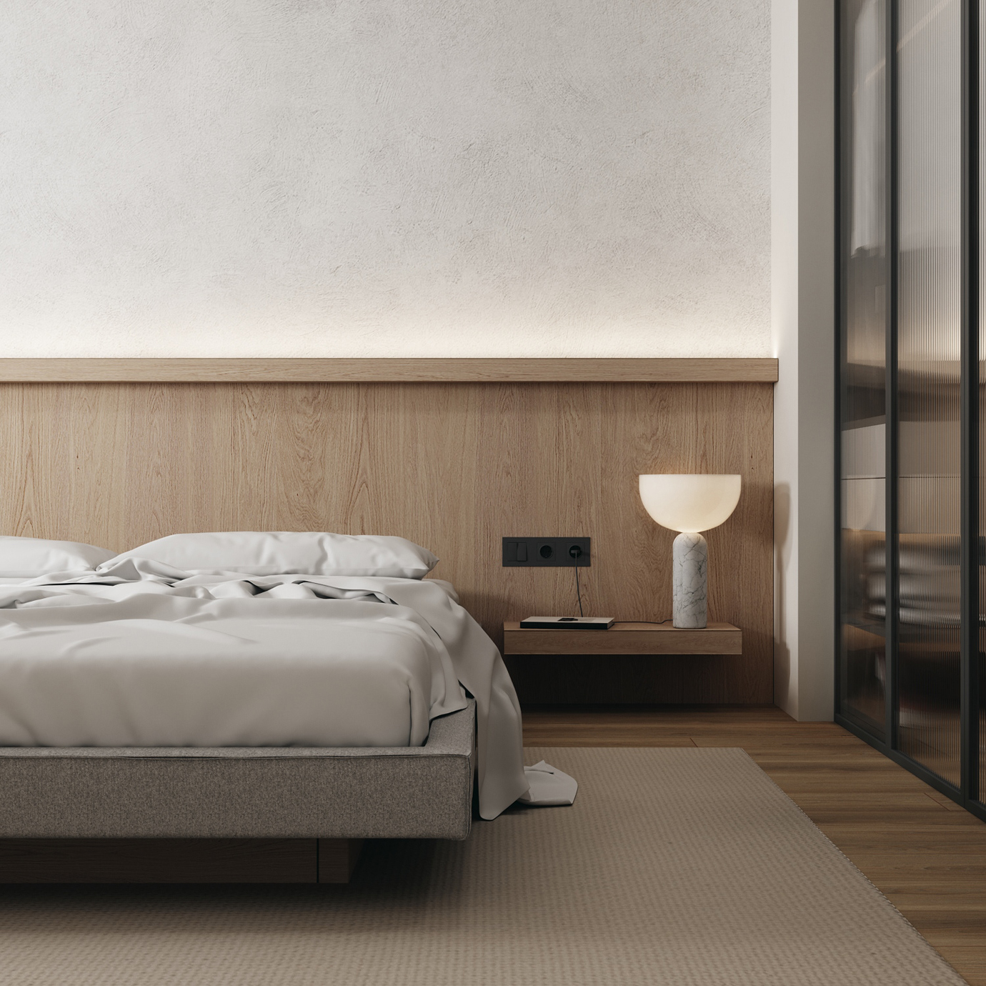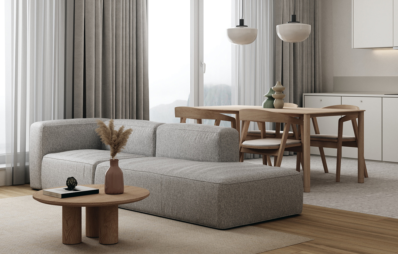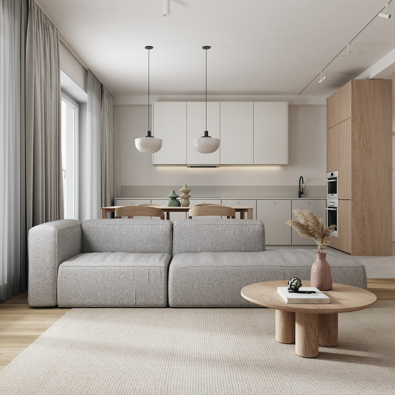 温润木色搭配白色墙体贯穿整个装修设计,入户玄关傍晚黄昏一开门那一抹温柔瞬间吹散了整天的工作疲劳,今日份的幸福感在心头环绕,慵懒却又轻快。原主卧房门的改动增加玄关区域的仪式感,餐厅区域的采光及舒适度都有了很大的提升。邻近天地壮阔,厚载心境盛境,格局是横亘于人群中幽静的分野。客厅电视背景的2:8的整体电视柜让居住收纳得到完美体现, 通过不同层次的木色搭配鸦青与灰色的沙发,小小的一撮绿植增添生机。整套空...