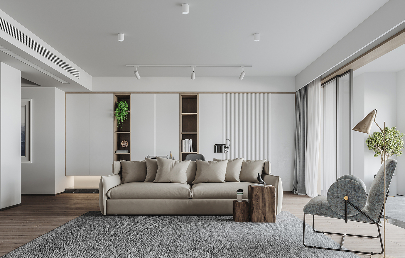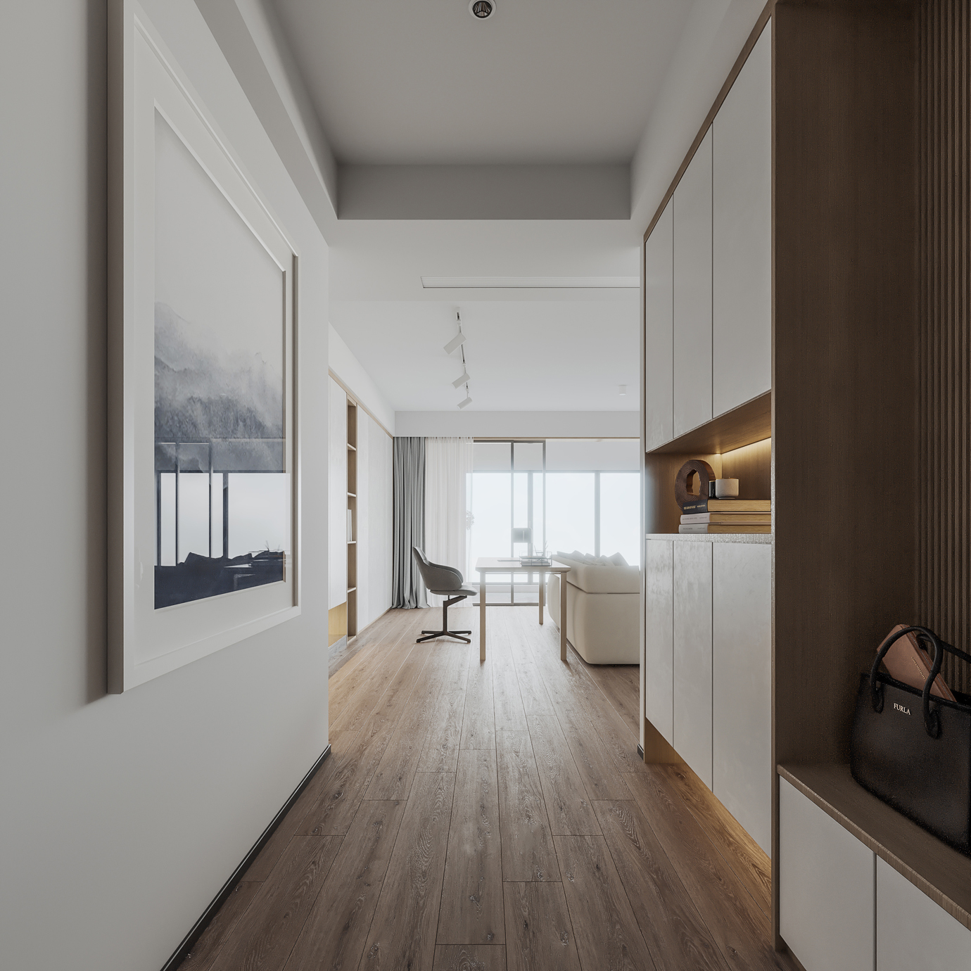 温润木色搭配白色墙体贯穿整个装修设计,入户玄关傍晚黄昏一开门那一抹温柔瞬间吹散了整天的工作疲劳,今日份的幸福感在心头环绕,慵懒却又轻快。原主卧房门的改动增加玄关区域的仪式感,餐厅区域的采光及舒适度都有了很大的提升。邻近天地壮阔,厚载心境盛境,格局是横亘于人群中幽静的分野。客厅电视背景的2:8的整体电视柜让居住收纳得到完美体现, 通过不同层次的木色搭配鸦青与灰色的沙发,小小的一撮绿植增添生机。整套空...