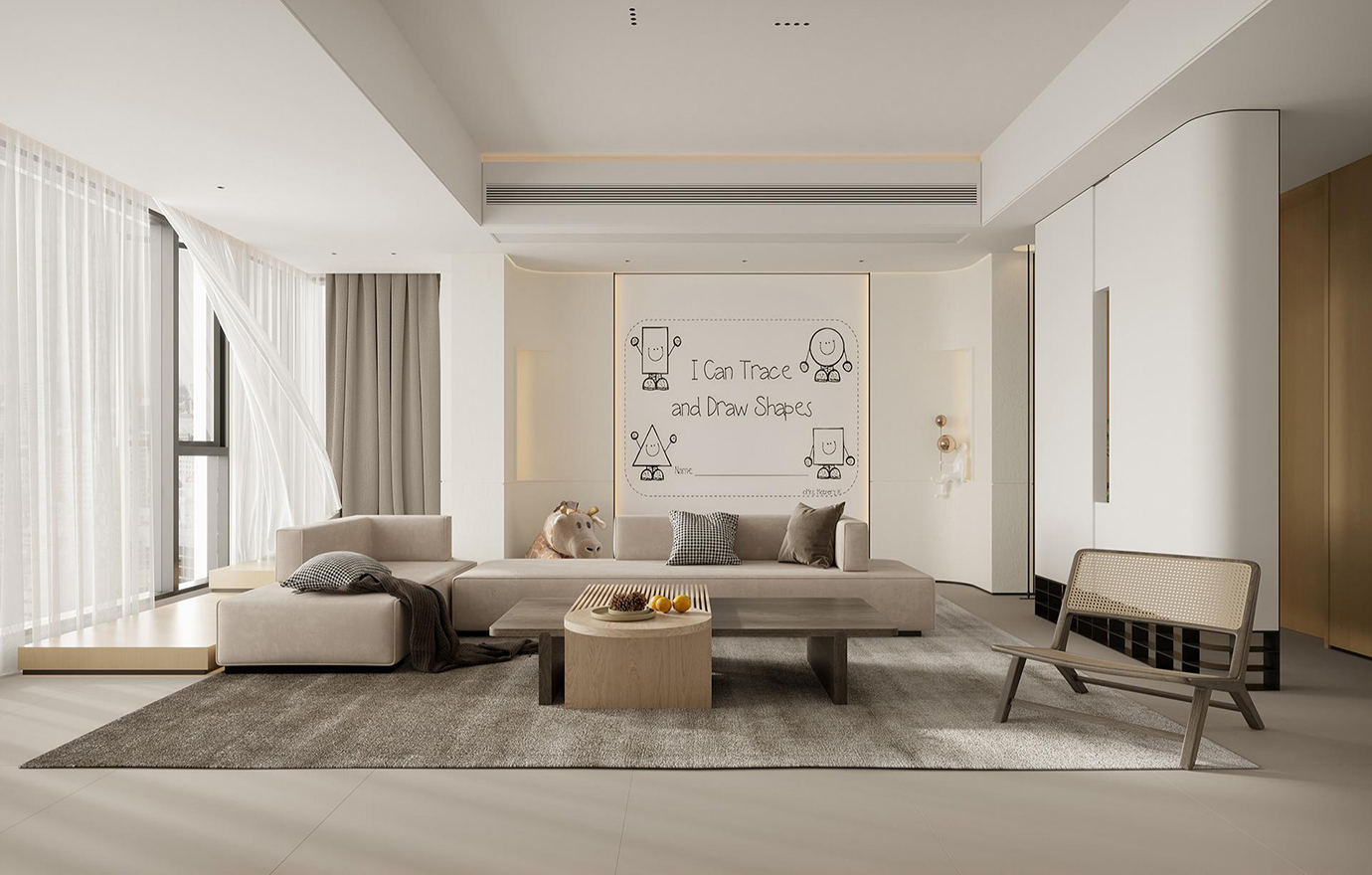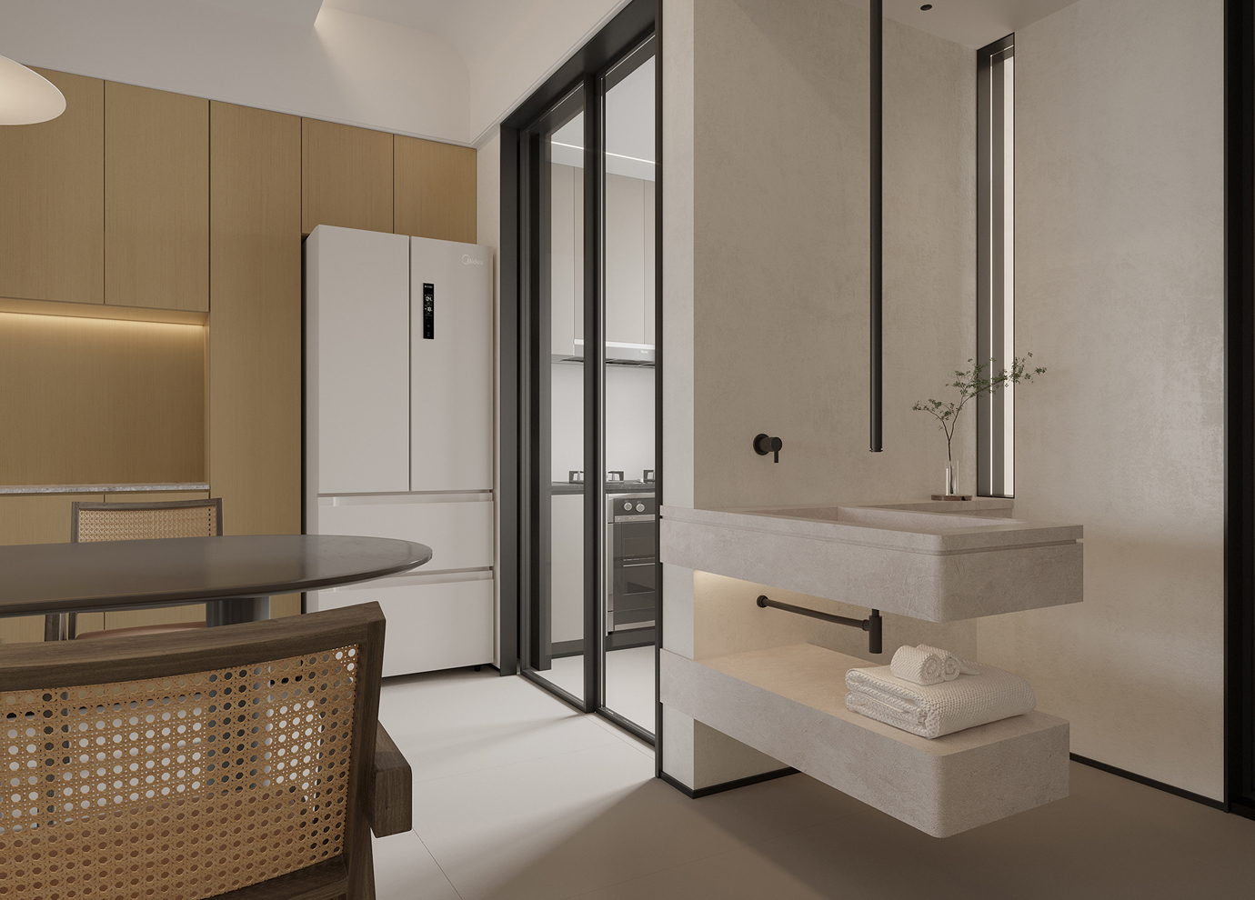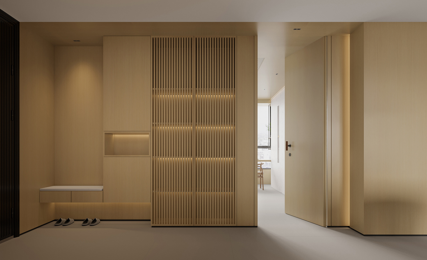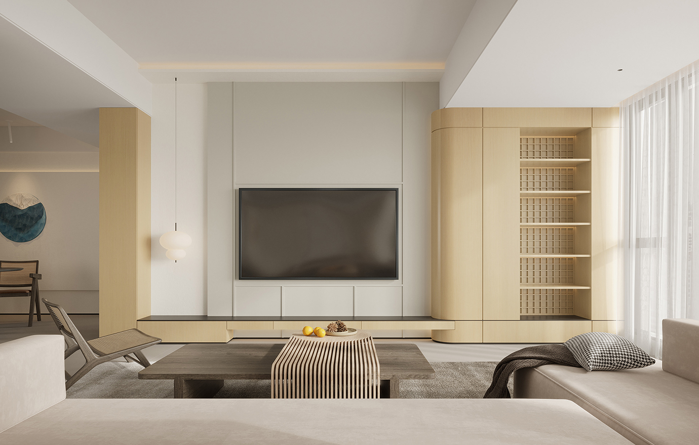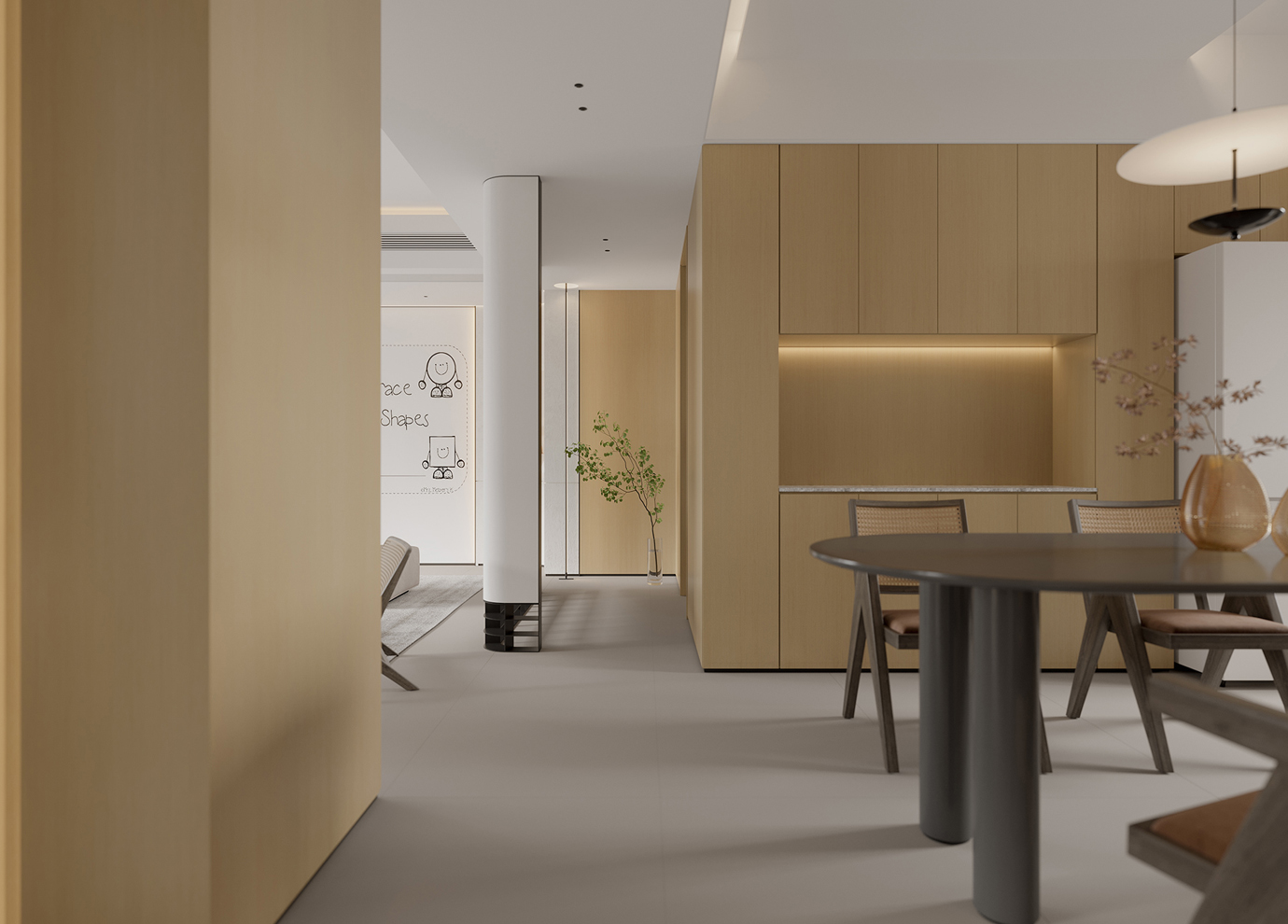 温润木色搭配白色墙体贯穿整个装修设计,入户玄关傍晚黄昏一开门那一抹温柔瞬间吹散了整天的工作疲劳,今日份的幸福感在心头环绕,慵懒却又轻快。原主卧房门的改动增加玄关区域的仪式感,餐厅区域的采光及舒适度都有了很大的提升。邻近天地壮阔,厚载心境盛境,格局是横亘于人群中幽静的分野。客厅电视背景的2:8的整体电视柜让居住收纳得到完美体现, 通过不同层次的木色搭配鸦青与灰色的沙发,小小的一撮绿植增添生机。整套空...