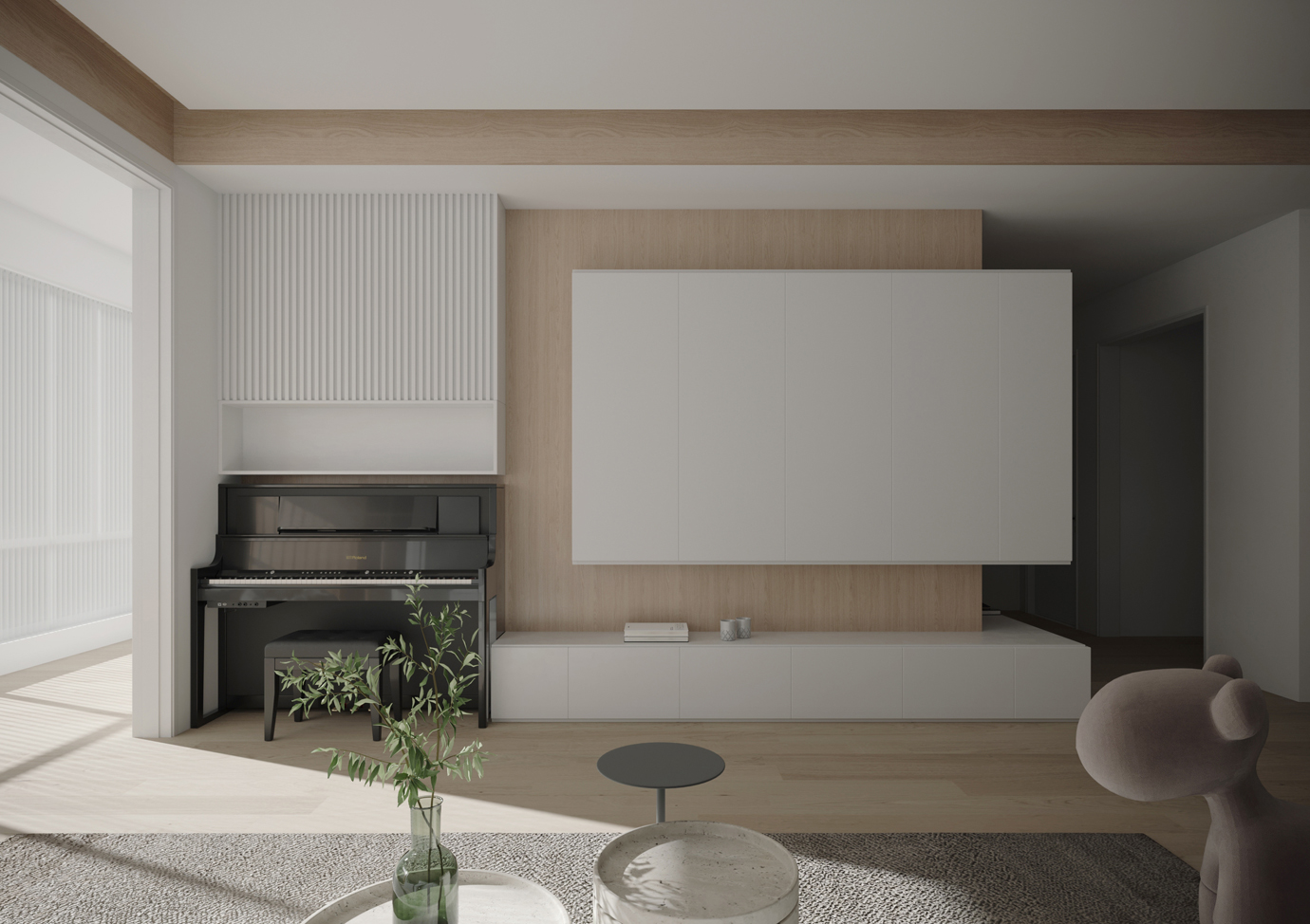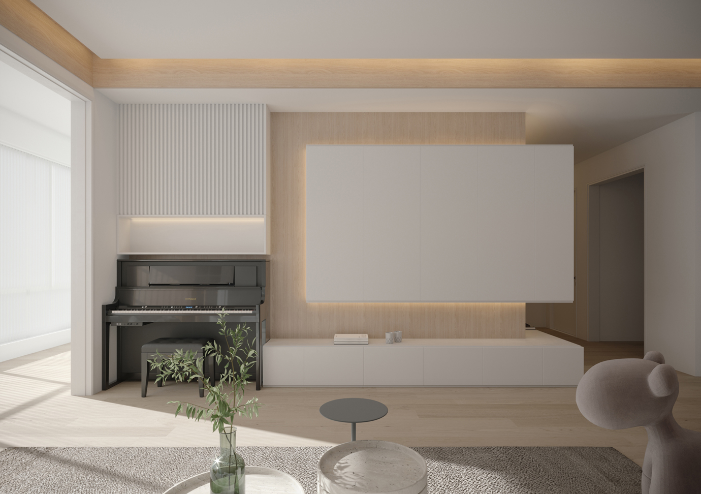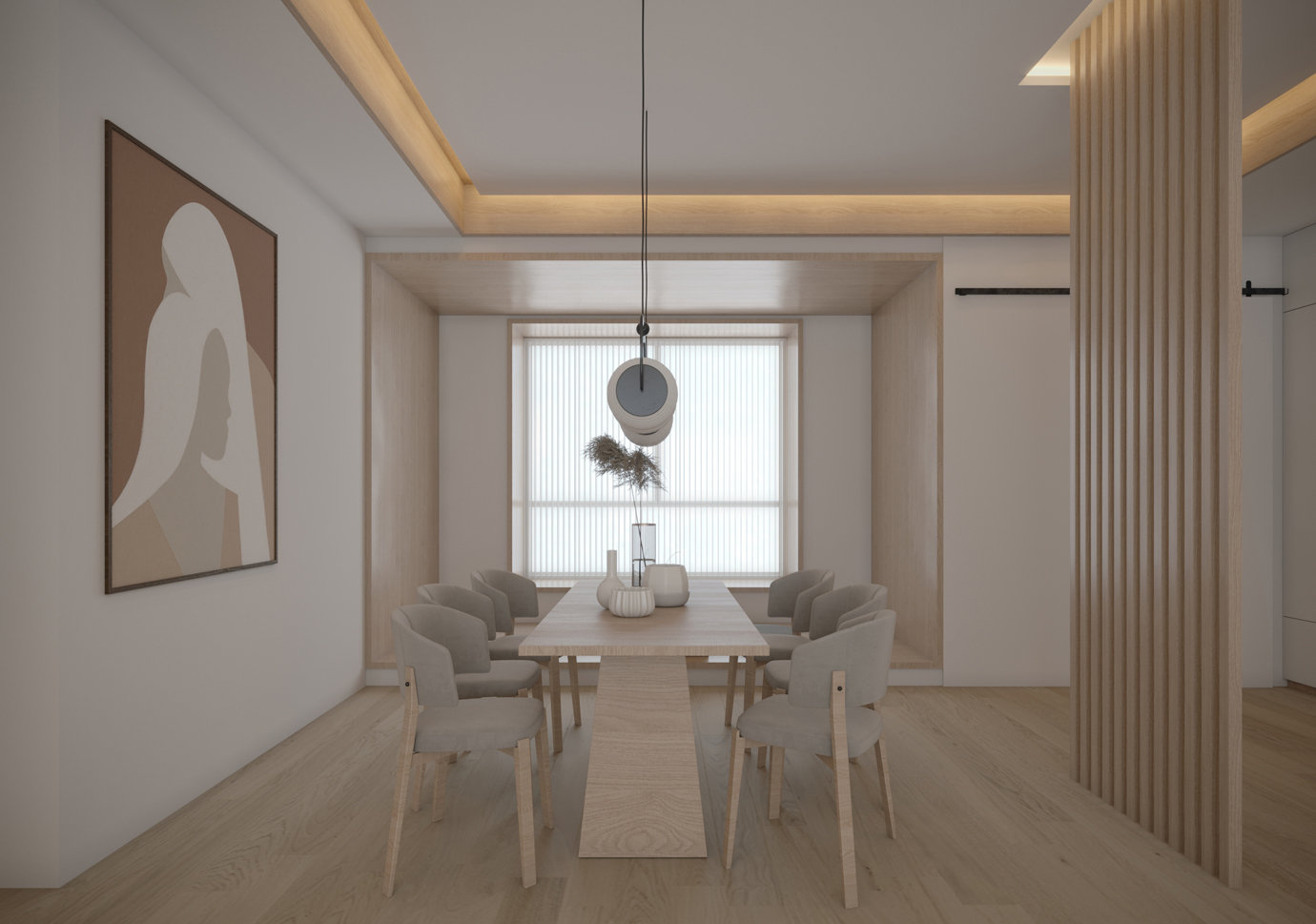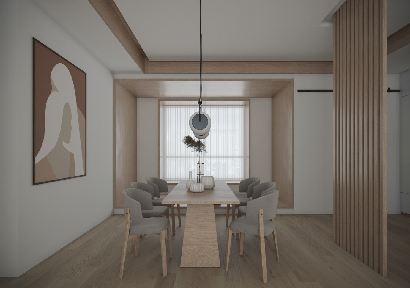 温润木色搭配白色墙体贯穿整个装修设计,入户玄关傍晚黄昏一开门那一抹温柔瞬间吹散了整天的工作疲劳,今日份的幸福感在心头环绕,慵懒却又轻快。原主卧房门的改动增加玄关区域的仪式感,餐厅区域的采光及舒适度都有了很大的提升。邻近天地壮阔,厚载心境盛境,格局是横亘于人群中幽静的分野。客厅电视背景的2:8的整体电视柜让居住收纳得到完美体现, 通过不同层次的木色搭配鸦青与灰色的沙发,小小的一撮绿植增添生机。整套空...