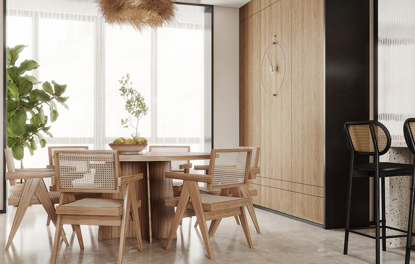 温润木色搭配白色墙体贯穿整个装修设计,入户玄关傍晚黄昏一开门那一抹温柔瞬间吹散了整天的工作疲劳,今日份的幸福感在心头环绕,慵懒却又轻快。原主卧房门的改动增加玄关区域的仪式感,餐厅区域的采光及舒适度都有了很大的提升。邻近天地壮阔,厚载心境盛境,格局是横亘于人群中幽静的分野。客厅电视背景的2:8的整体电视柜让居住收纳得到完美体现, 通过不同层次的木色搭配鸦青与灰色的沙发,小小的一撮绿植增添生机。整套空...