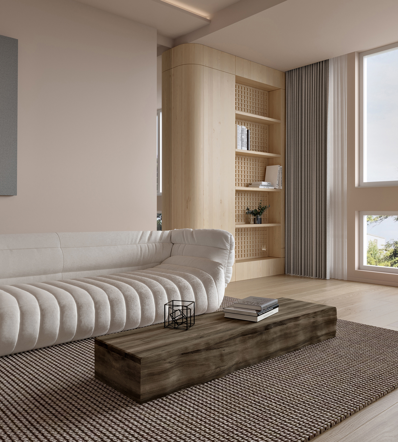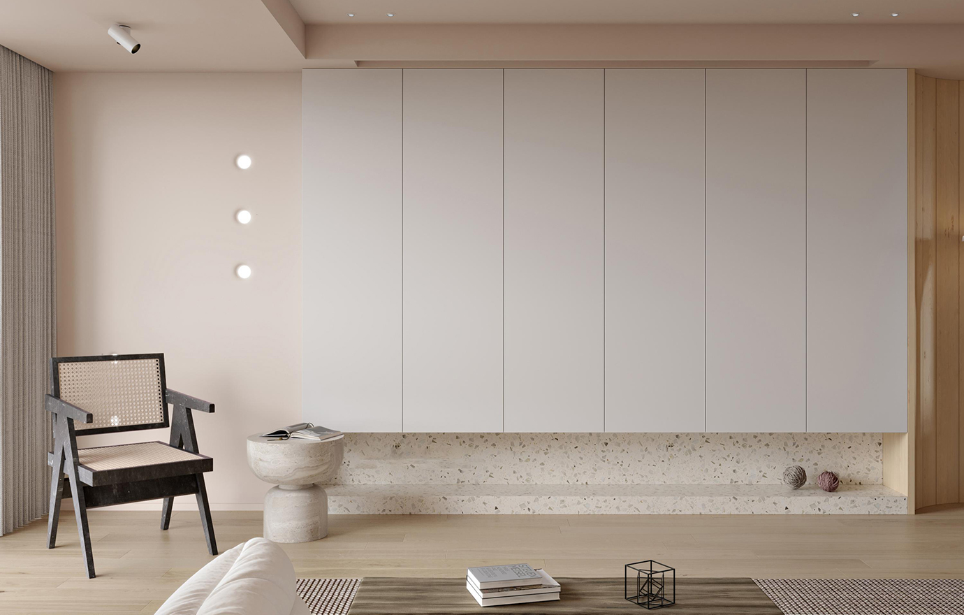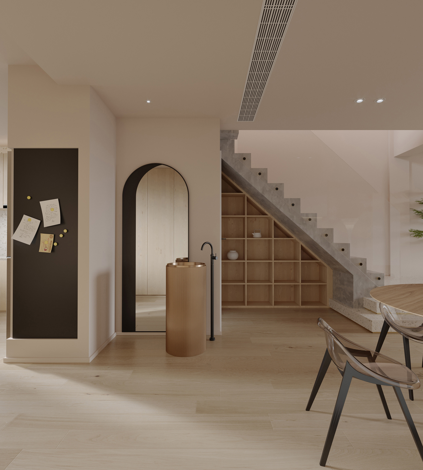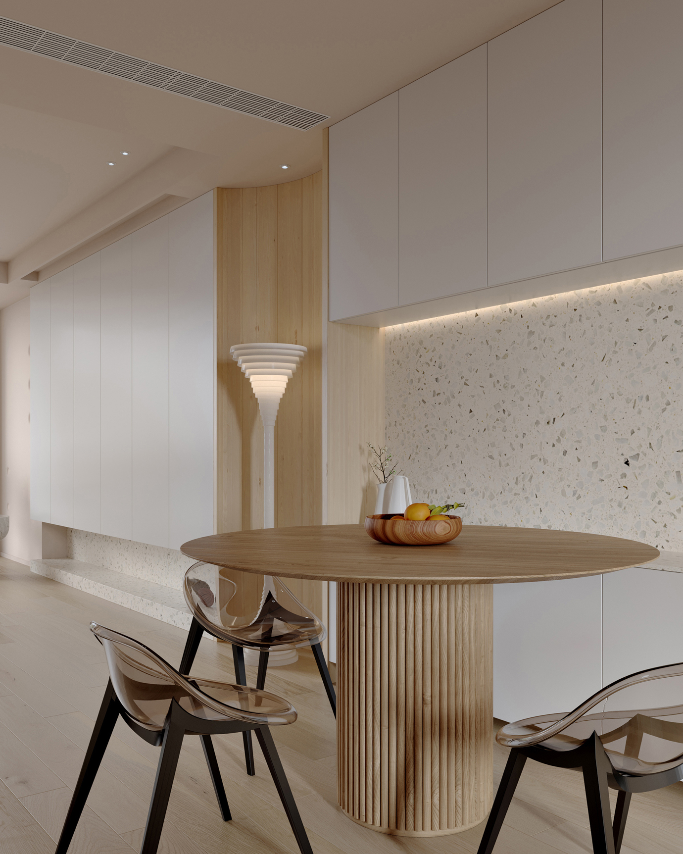 温润木色搭配白色墙体贯穿整个装修设计,入户玄关傍晚黄昏一开门那一抹温柔瞬间吹散了整天的工作疲劳,今日份的幸福感在心头环绕,慵懒却又轻快。原主卧房门的改动增加玄关区域的仪式感,餐厅区域的采光及舒适度都有了很大的提升。邻近天地壮阔,厚载心境盛境,格局是横亘于人群中幽静的分野。客厅电视背景的2:8的整体电视柜让居住收纳得到完美体现, 通过不同层次的木色搭配鸦青与灰色的沙发,小小的一撮绿植增添生机。整套空...