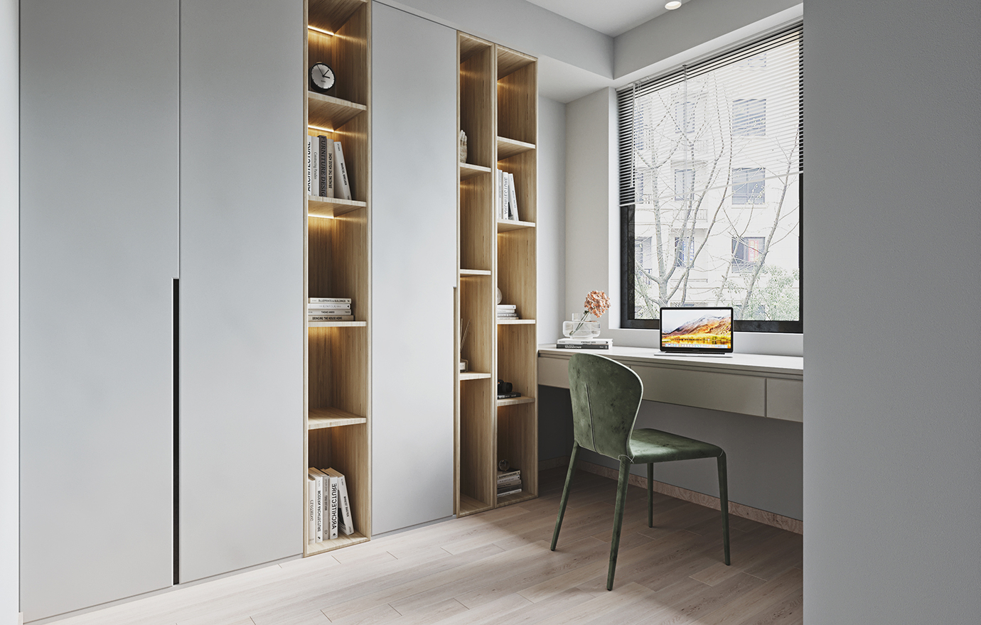 温润木色搭配白色墙体贯穿整个装修设计,入户玄关傍晚黄昏一开门那一抹温柔瞬间吹散了整天的工作疲劳,今日份的幸福感在心头环绕,慵懒却又轻快。原主卧房门的改动增加玄关区域的仪式感,餐厅区域的采光及舒适度都有了很大的提升。邻近天地壮阔,厚载心境盛境,格局是横亘于人群中幽静的分野。客厅电视背景的2:8的整体电视柜让居住收纳得到完美体现, 通过不同层次的木色搭配鸦青与灰色的沙发,小小的一撮绿植增添生机。整套空...