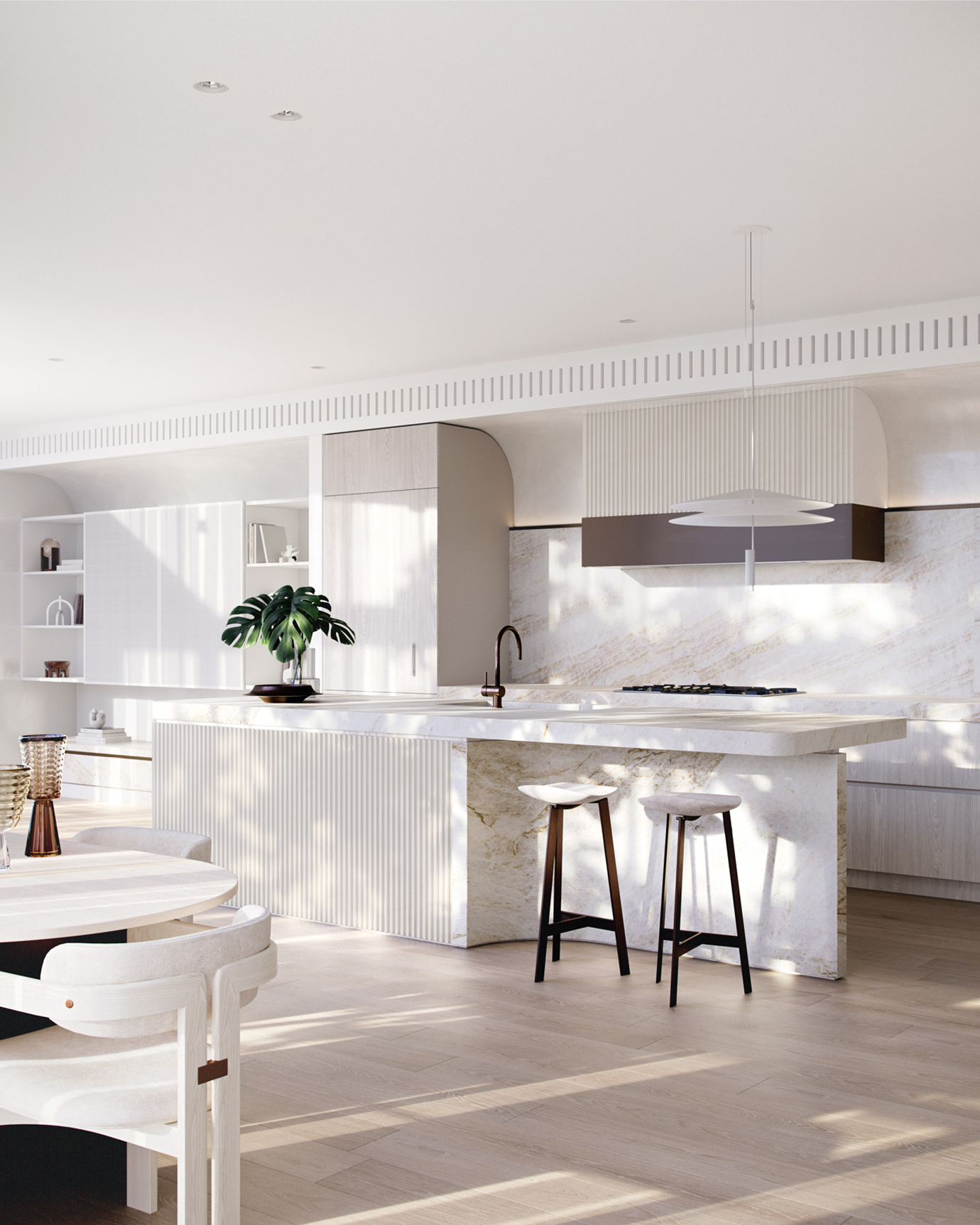 温润木色搭配白色墙体贯穿整个装修设计,入户玄关傍晚黄昏一开门那一抹温柔瞬间吹散了整天的工作疲劳,今日份的幸福感在心头环绕,慵懒却又轻快。原主卧房门的改动增加玄关区域的仪式感,餐厅区域的采光及舒适度都有了很大的提升。邻近天地壮阔,厚载心境盛境,格局是横亘于人群中幽静的分野。客厅电视背景的2:8的整体电视柜让居住收纳得到完美体现, 通过不同层次的木色搭配鸦青与灰色的沙发,小小的一撮绿植增添生机。整套空...