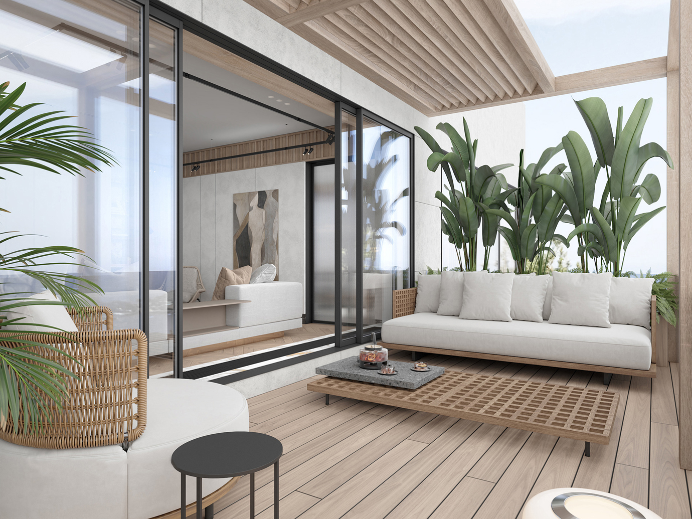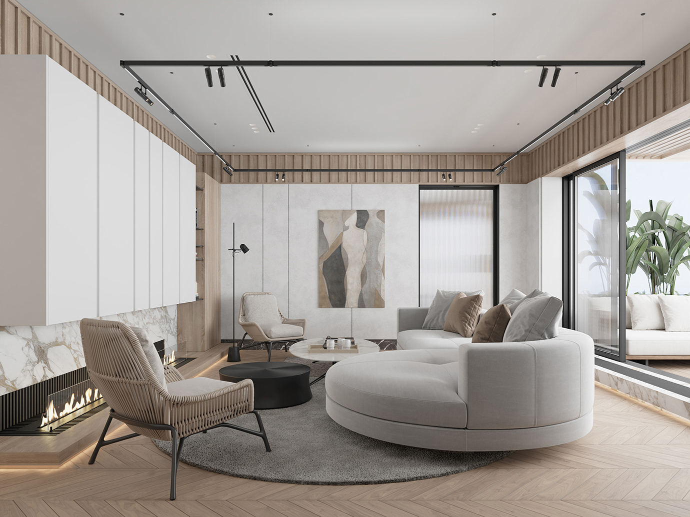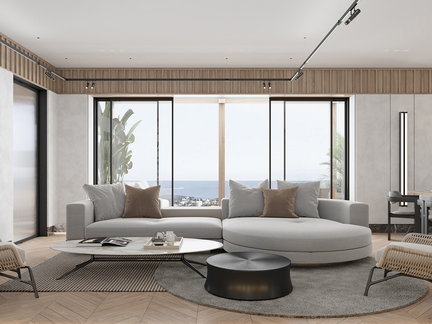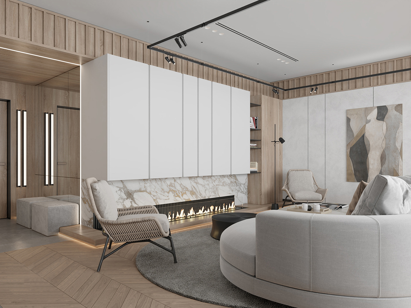 温润木色搭配白色墙体贯穿整个装修设计,入户玄关傍晚黄昏一开门那一抹温柔瞬间吹散了整天的工作疲劳,今日份的幸福感在心头环绕,慵懒却又轻快。原主卧房门的改动增加玄关区域的仪式感,餐厅区域的采光及舒适度都有了很大的提升。邻近天地壮阔,厚载心境盛境,格局是横亘于人群中幽静的分野。客厅电视背景的2:8的整体电视柜让居住收纳得到完美体现, 通过不同层次的木色搭配鸦青与灰色的沙发,小小的一撮绿植增添生机。整套空...