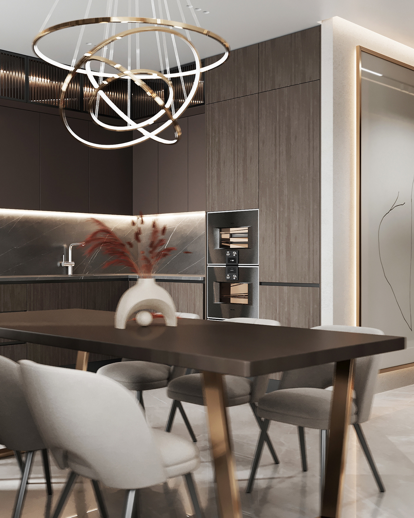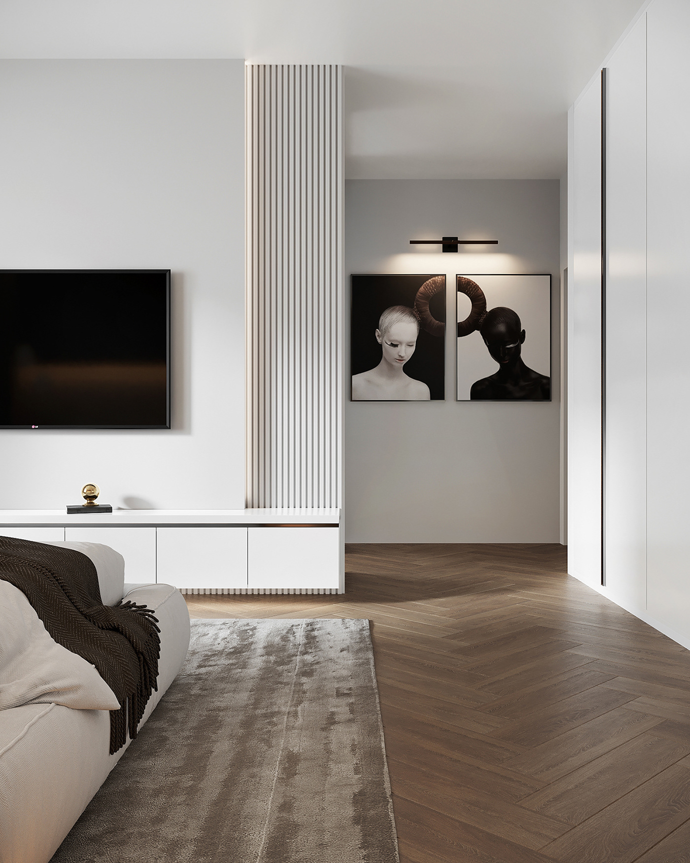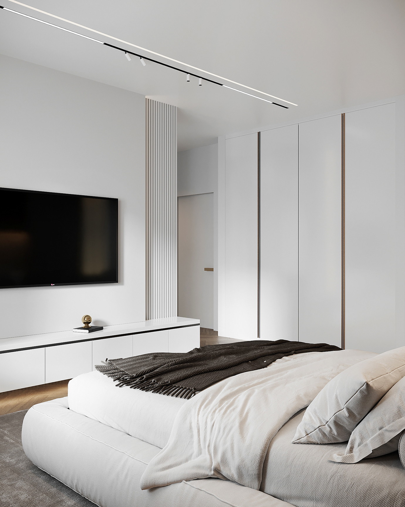 温润木色搭配白色墙体贯穿整个装修设计,入户玄关傍晚黄昏一开门那一抹温柔瞬间吹散了整天的工作疲劳,今日份的幸福感在心头环绕,慵懒却又轻快。原主卧房门的改动增加玄关区域的仪式感,餐厅区域的采光及舒适度都有了很大的提升。邻近天地壮阔,厚载心境盛境,格局是横亘于人群中幽静的分野。客厅电视背景的2:8的整体电视柜让居住收纳得到完美体现, 通过不同层次的木色搭配鸦青与灰色的沙发,小小的一撮绿植增添生机。整套空...