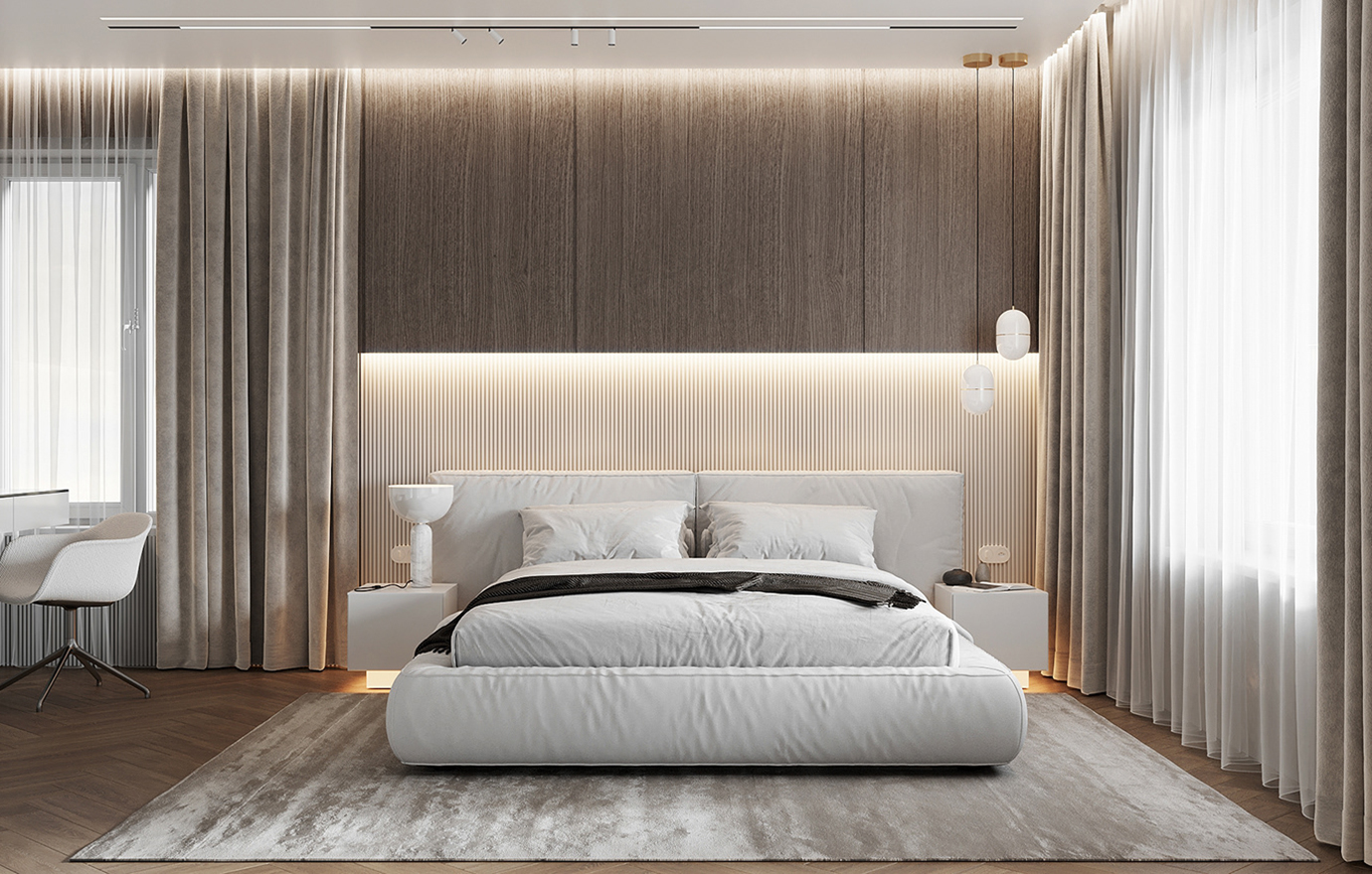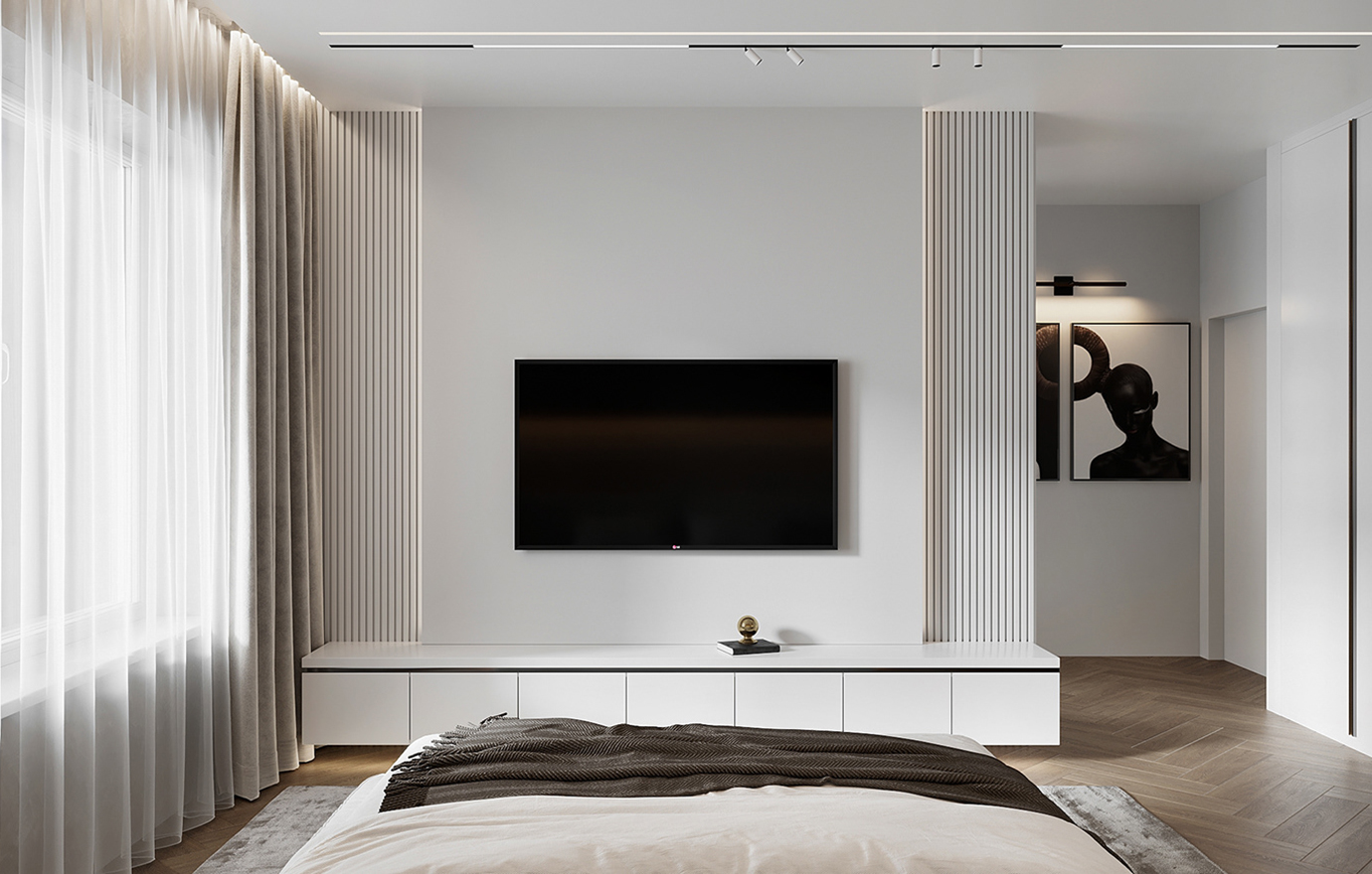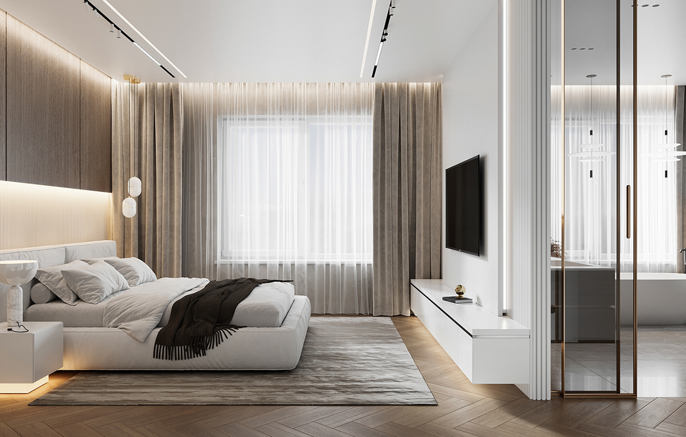 温润木色搭配白色墙体贯穿整个装修设计,入户玄关傍晚黄昏一开门那一抹温柔瞬间吹散了整天的工作疲劳,今日份的幸福感在心头环绕,慵懒却又轻快。原主卧房门的改动增加玄关区域的仪式感,餐厅区域的采光及舒适度都有了很大的提升。邻近天地壮阔,厚载心境盛境,格局是横亘于人群中幽静的分野。客厅电视背景的2:8的整体电视柜让居住收纳得到完美体现, 通过不同层次的木色搭配鸦青与灰色的沙发,小小的一撮绿植增添生机。整套空...