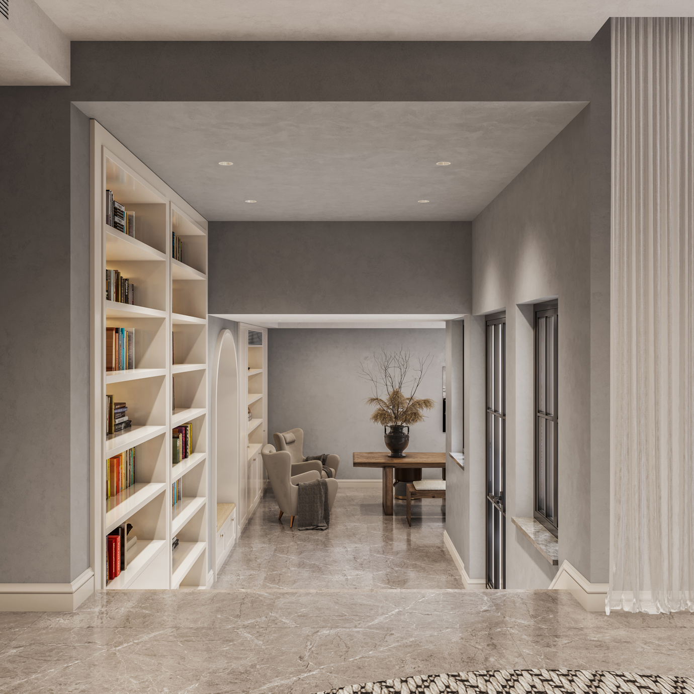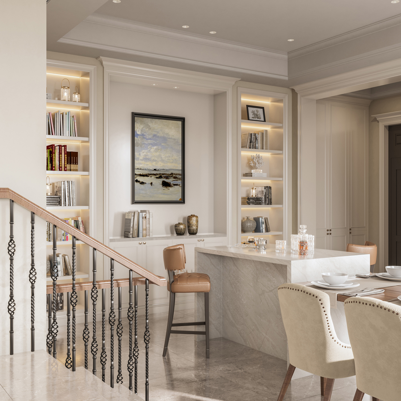 温润木色搭配白色墙体贯穿整个装修设计,入户玄关傍晚黄昏一开门那一抹温柔瞬间吹散了整天的工作疲劳,今日份的幸福感在心头环绕,慵懒却又轻快。原主卧房门的改动增加玄关区域的仪式感,餐厅区域的采光及舒适度都有了很大的提升。邻近天地壮阔,厚载心境盛境,格局是横亘于人群中幽静的分野。客厅电视背景的2:8的整体电视柜让居住收纳得到完美体现, 通过不同层次的木色搭配鸦青与灰色的沙发,小小的一撮绿植增添生机。整套空...
