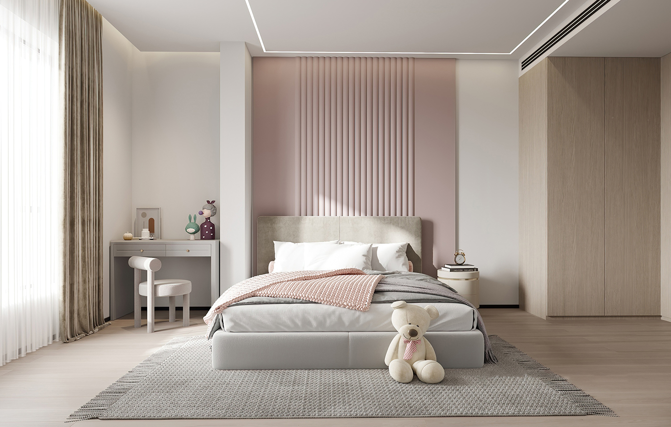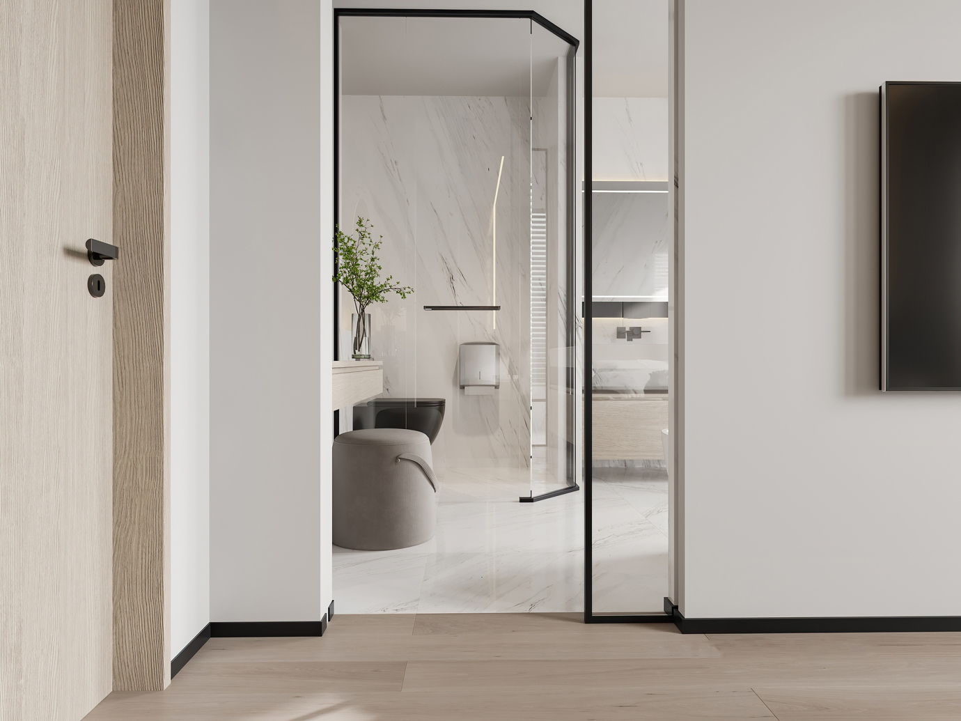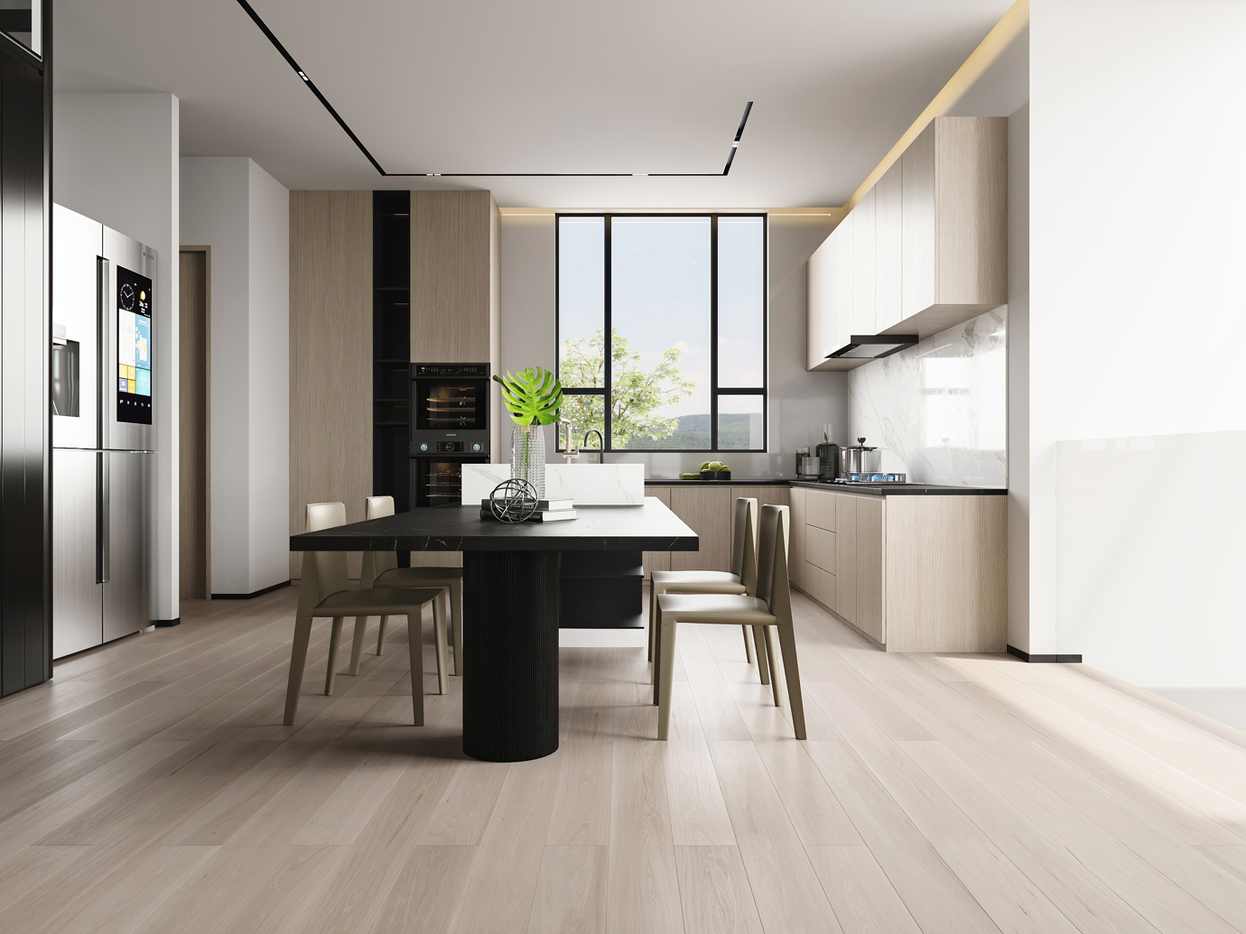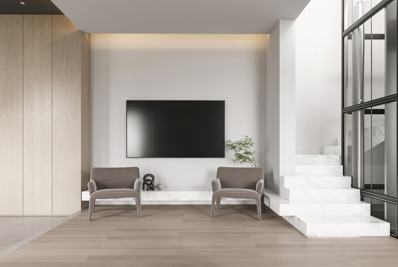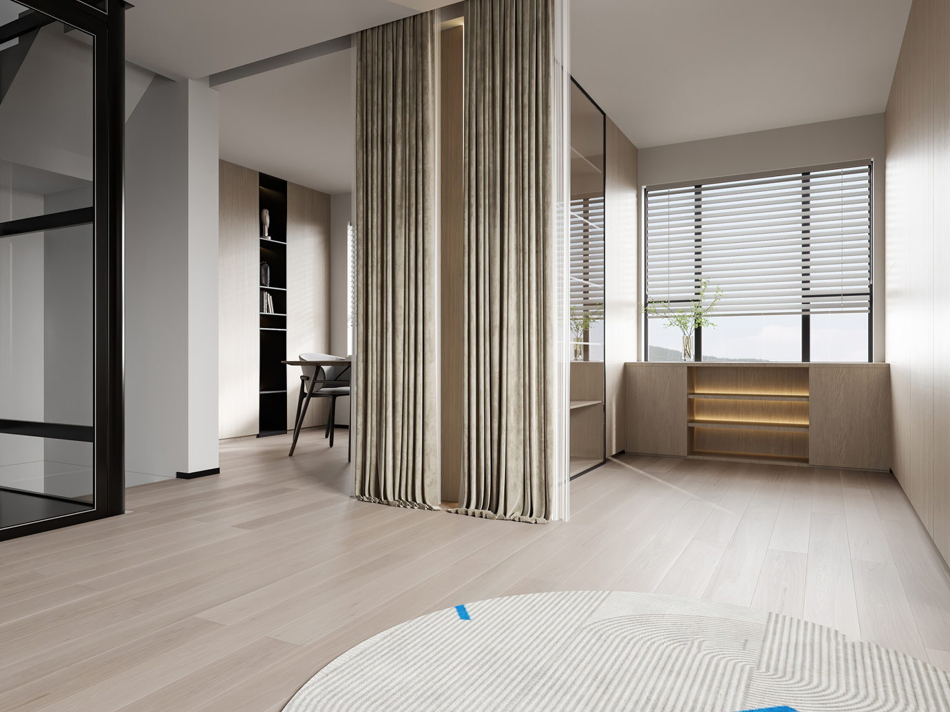 温润木色搭配白色墙体贯穿整个装修设计,入户玄关傍晚黄昏一开门那一抹温柔瞬间吹散了整天的工作疲劳,今日份的幸福感在心头环绕,慵懒却又轻快。原主卧房门的改动增加玄关区域的仪式感,餐厅区域的采光及舒适度都有了很大的提升。邻近天地壮阔,厚载心境盛境,格局是横亘于人群中幽静的分野。客厅电视背景的2:8的整体电视柜让居住收纳得到完美体现, 通过不同层次的木色搭配鸦青与灰色的沙发,小小的一撮绿植增添生机。整套空...