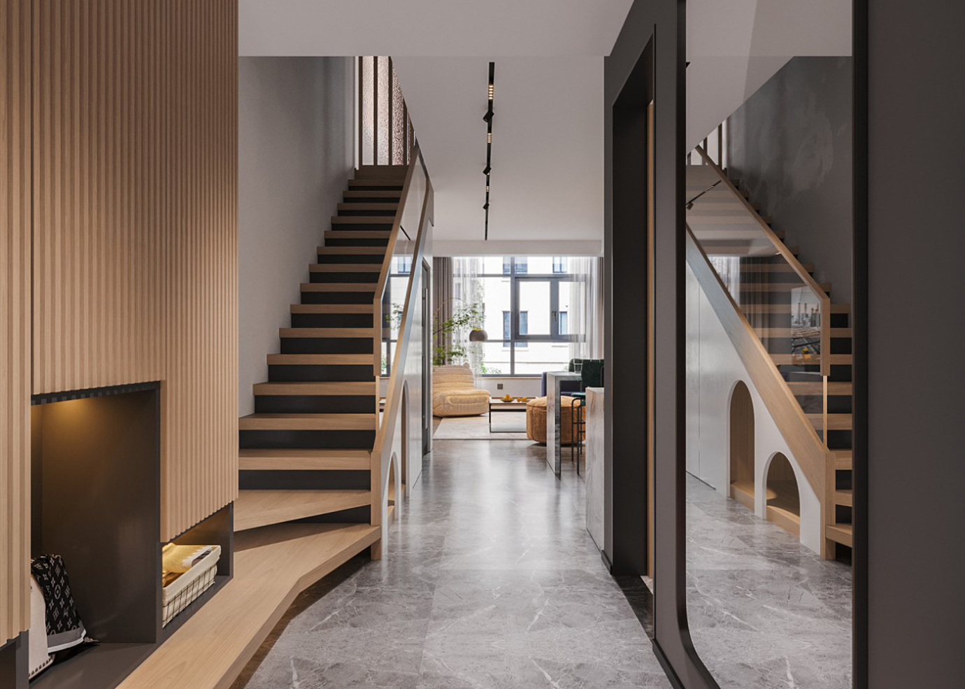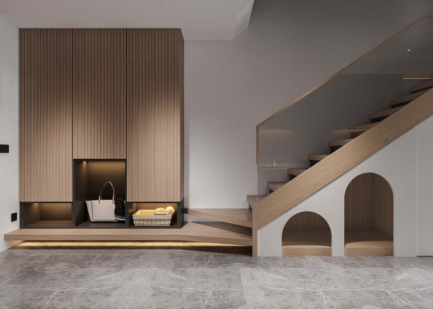 温润木色搭配白色墙体贯穿整个装修设计,入户玄关傍晚黄昏一开门那一抹温柔瞬间吹散了整天的工作疲劳,今日份的幸福感在心头环绕,慵懒却又轻快。原主卧房门的改动增加玄关区域的仪式感,餐厅区域的采光及舒适度都有了很大的提升。邻近天地壮阔,厚载心境盛境,格局是横亘于人群中幽静的分野。客厅电视背景的2:8的整体电视柜让居住收纳得到完美体现, 通过不同层次的木色搭配鸦青与灰色的沙发,小小的一撮绿植增添生机。整套空...