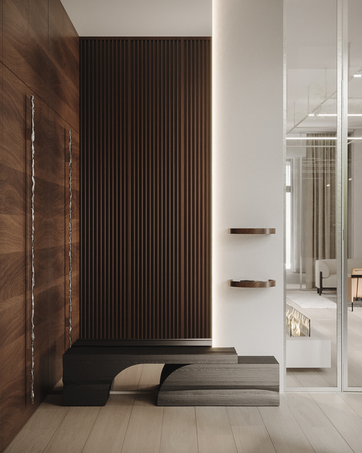 温润木色搭配白色墙体贯穿整个装修设计,入户玄关傍晚黄昏一开门那一抹温柔瞬间吹散了整天的工作疲劳,今日份的幸福感在心头环绕,慵懒却又轻快。原主卧房门的改动增加玄关区域的仪式感,餐厅区域的采光及舒适度都有了很大的提升。邻近天地壮阔,厚载心境盛境,格局是横亘于人群中幽静的分野。客厅电视背景的2:8的整体电视柜让居住收纳得到完美体现, 通过不同层次的木色搭配鸦青与灰色的沙发,小小的一撮绿植增添生机。整套空...