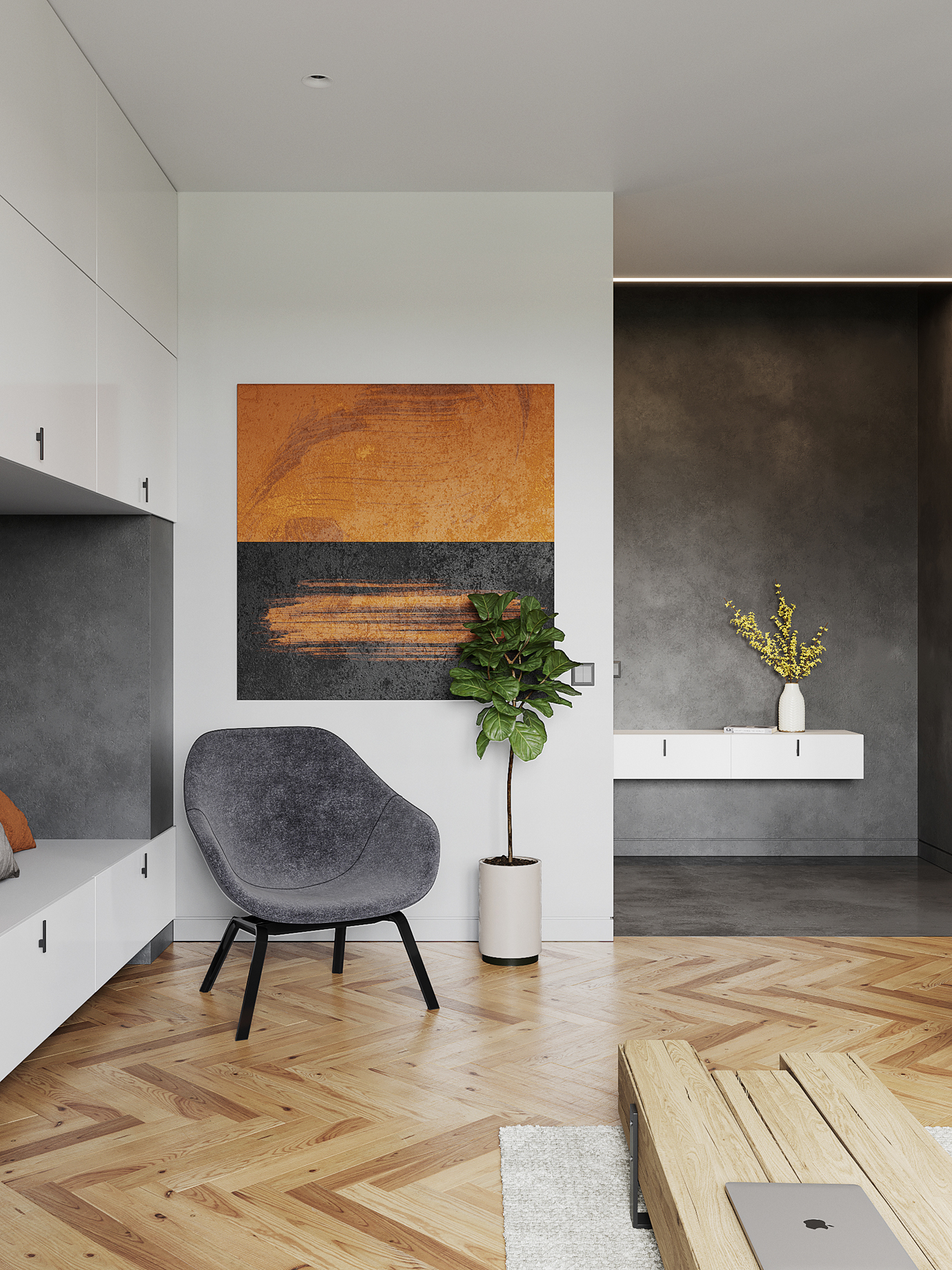 温润木色搭配白色墙体贯穿整个装修设计,入户玄关傍晚黄昏一开门那一抹温柔瞬间吹散了整天的工作疲劳,今日份的幸福感在心头环绕,慵懒却又轻快。原主卧房门的改动增加玄关区域的仪式感,餐厅区域的采光及舒适度都有了很大的提升。邻近天地壮阔,厚载心境盛境,格局是横亘于人群中幽静的分野。客厅电视背景的2:8的整体电视柜让居住收纳得到完美体现, 通过不同层次的木色搭配鸦青与灰色的沙发,小小的一撮绿植增添生机。整套空...